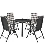 Livrarea include 1 masa, 4 scaune si 4 perne de scaun.