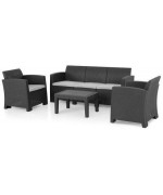 Set 2 fotolii, canapea și măsuță Ponte. Amenajați o zonă de relaxare în aer liber, acolo unde să vă bucurați de zilele călduroase și de momente de liniște. Setul din gama Ponte este practic și versatil,. potrivit atât pentru familiile mici, dar și pentru momentele când prietenii se alătură pentru un grătar sau o cafea în aer liber. Produsele sunt confecționate din plastic, așadar sunt impermeabile și rezistente la efectul decolorării produs de razele UV.