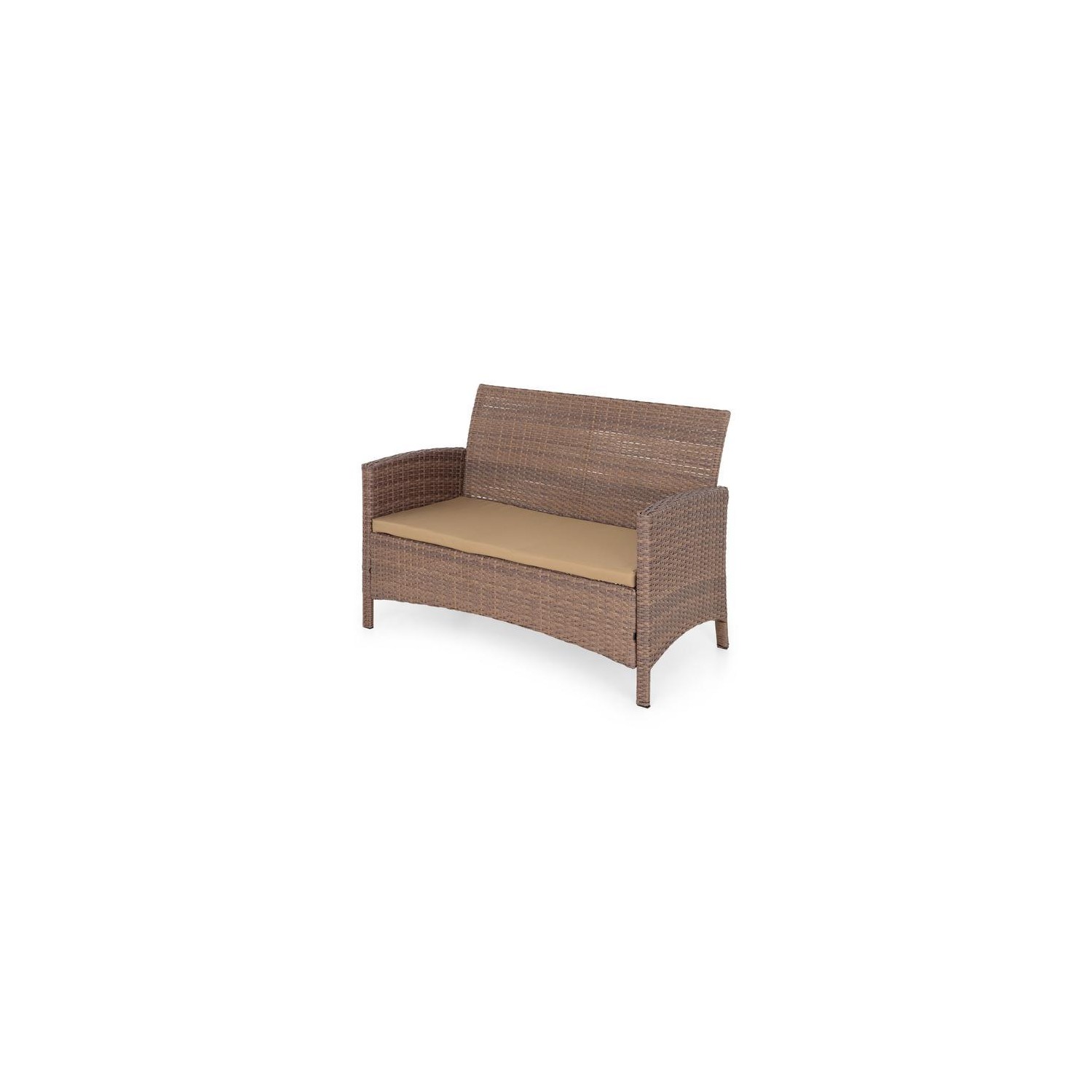 Mobilier realizat din structura de otel vopsita in camp electrostatic si impletita cu fibre sintetice(polipropilena) ce imita ratanul tratate impotriva decolorarii.