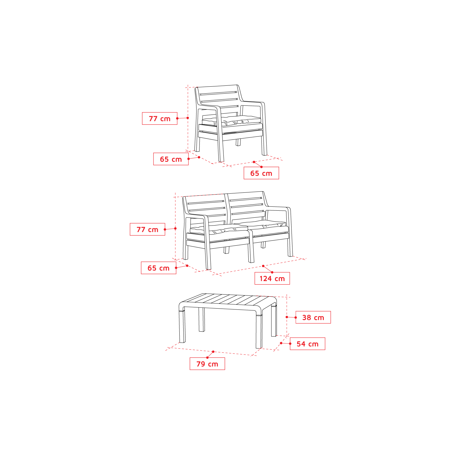 Dimensiune scaun (L x l x h) (cm): 65 x 65 x 77