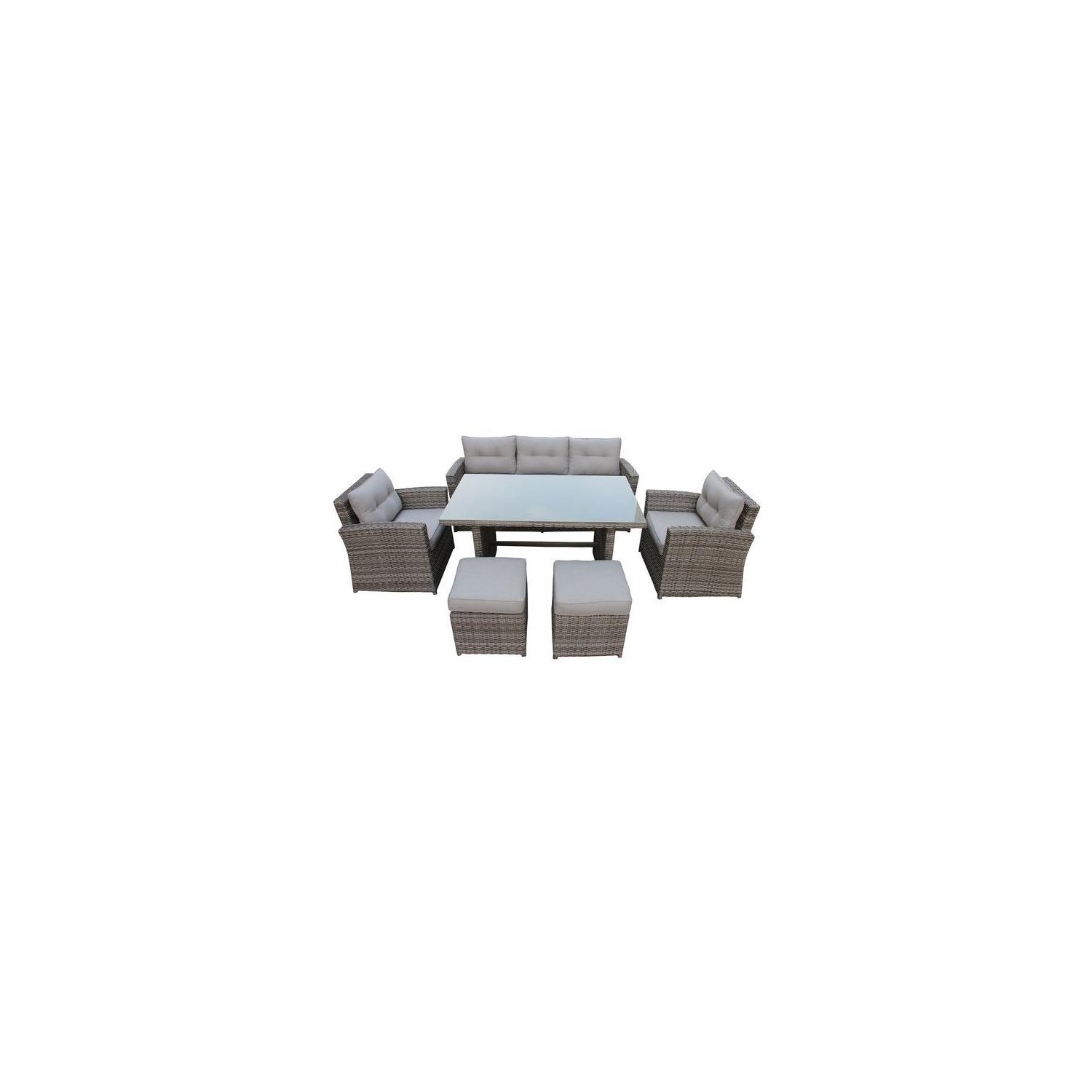 Mobilier realizat din structura de aluminiu vopsita in camp electrostatic si impletita cu fibre sintetice tratate UV, ce imita ratanul .
