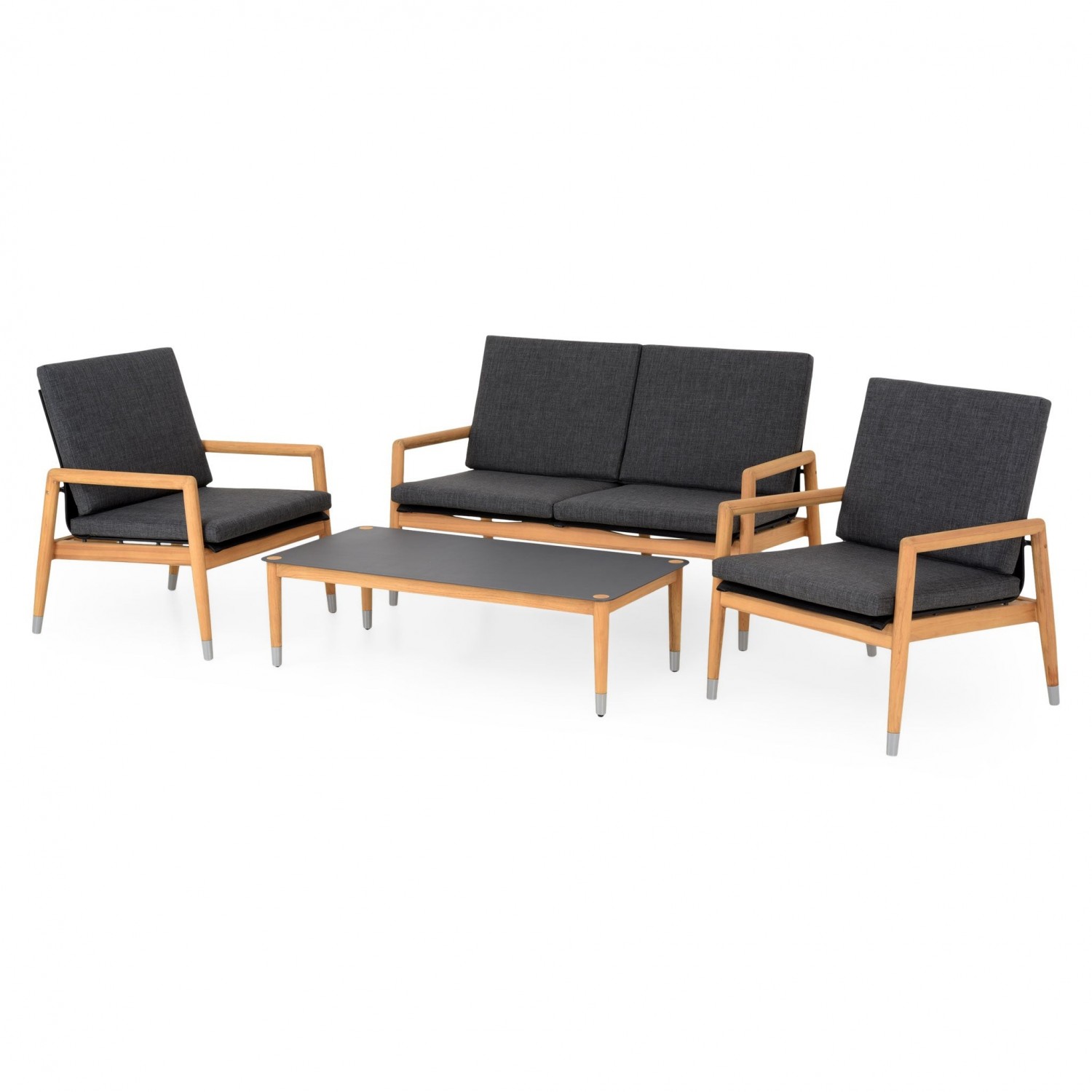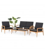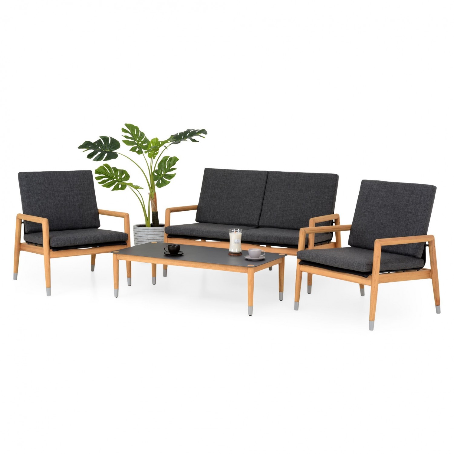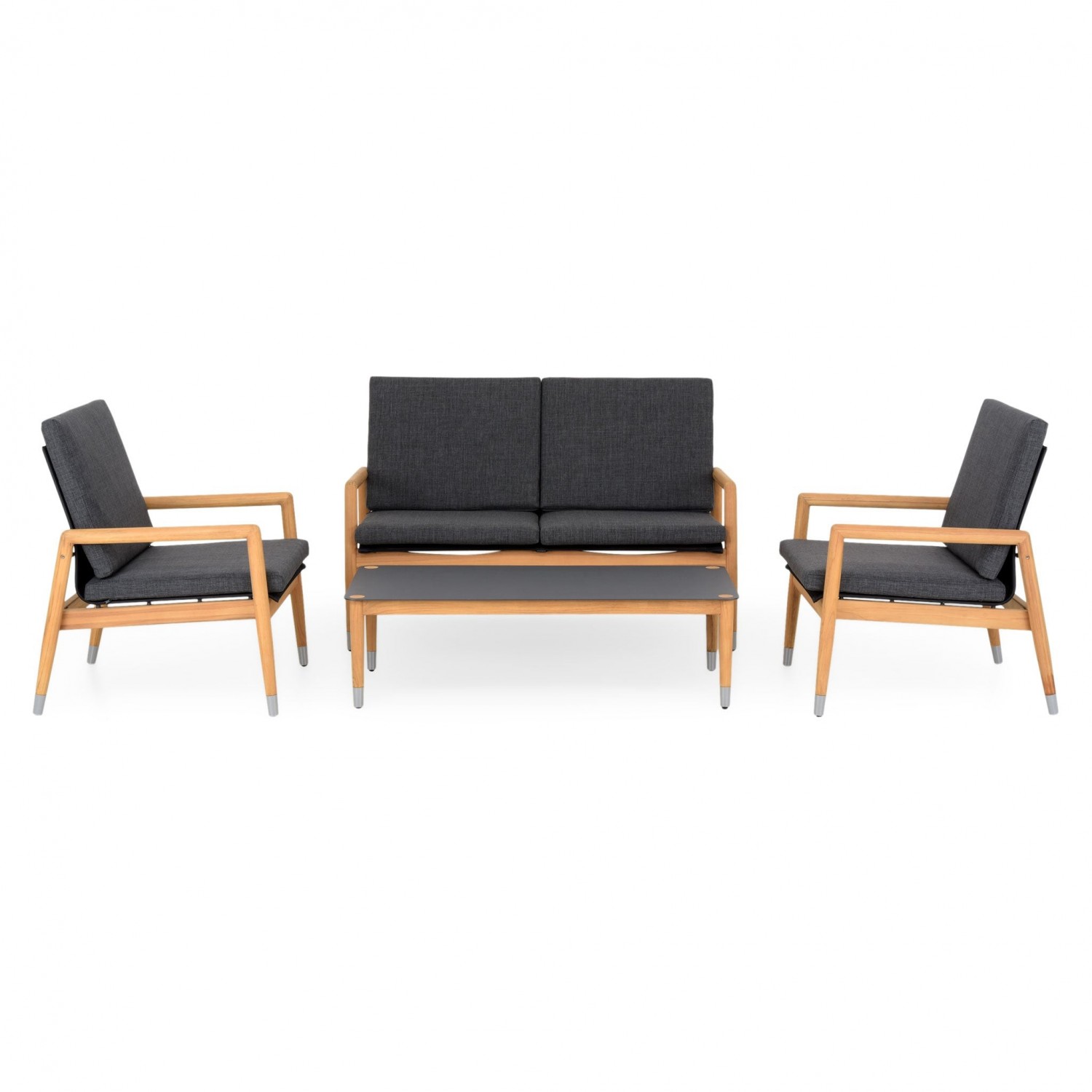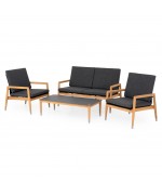 Setul este realizat din structura din lemn de teak si aluminiu, sezutul si spatarul fiind confectionate din textilina fina cu protectie UV.