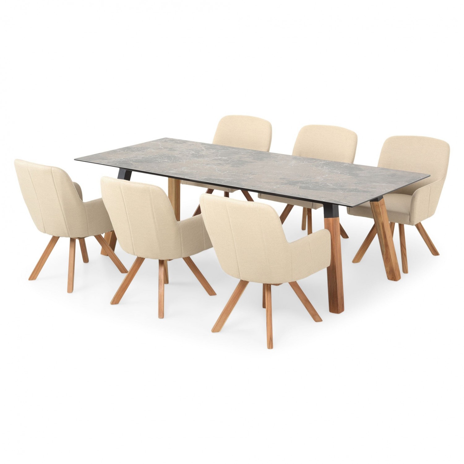 Material: Aluminiu, lemn teak, ceramica si tesatura Sunbrella