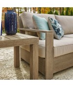 Realizat din lemn masiv de eucalipt si accesorizat cu perne din tesatura Nuvella rezistente la umezeala si decolorare, setul este comod si stabil pentru sederi placute acasa.