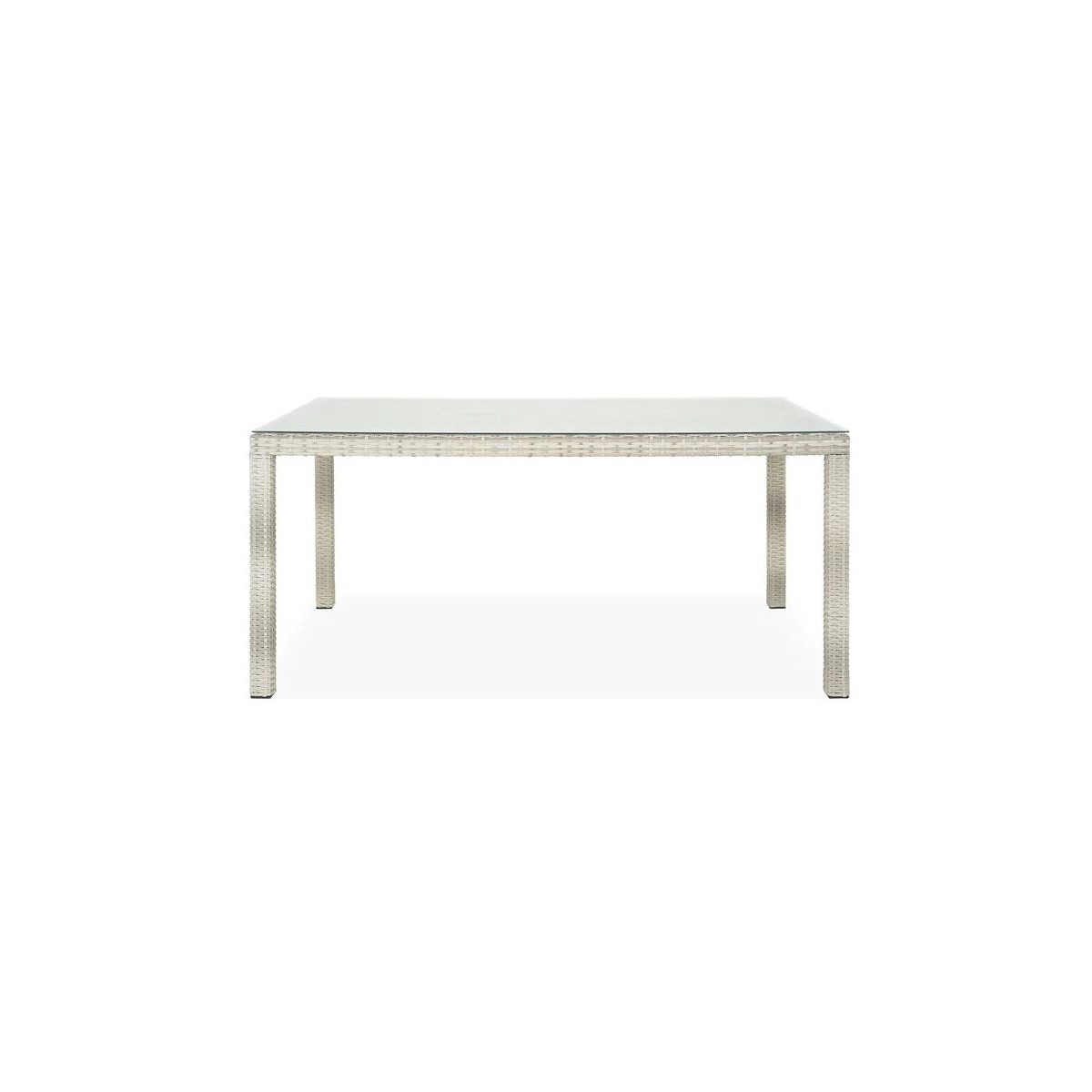 Sunt incluse si pernele din poliester cu protectie impotriva umezelii si a razelor UV, iar topul mesei este realizat din sticla securizata.
