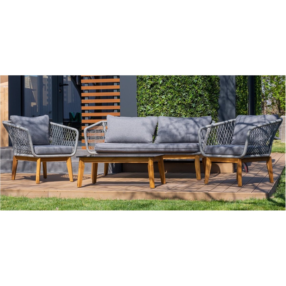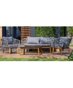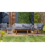 Setul este compus dintr-o canapea, 2 fotolii si o masuta.