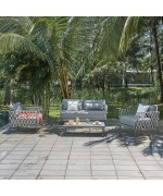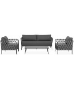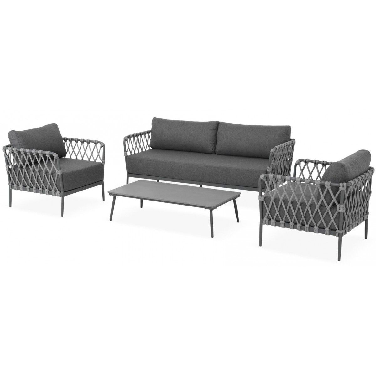 Set mobilier terasă/grădină Marrakesh, complet și elegant, format din 2 fotolii, canapea 3 locuri și măsuță de cafea. Ideal pentru relaxare și socializare în aer liber, cu un design modern care se integrează ușor în orice spațiu exterior.