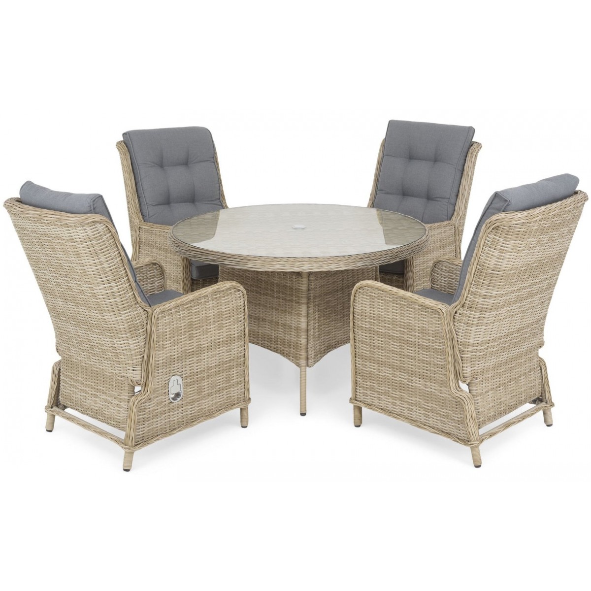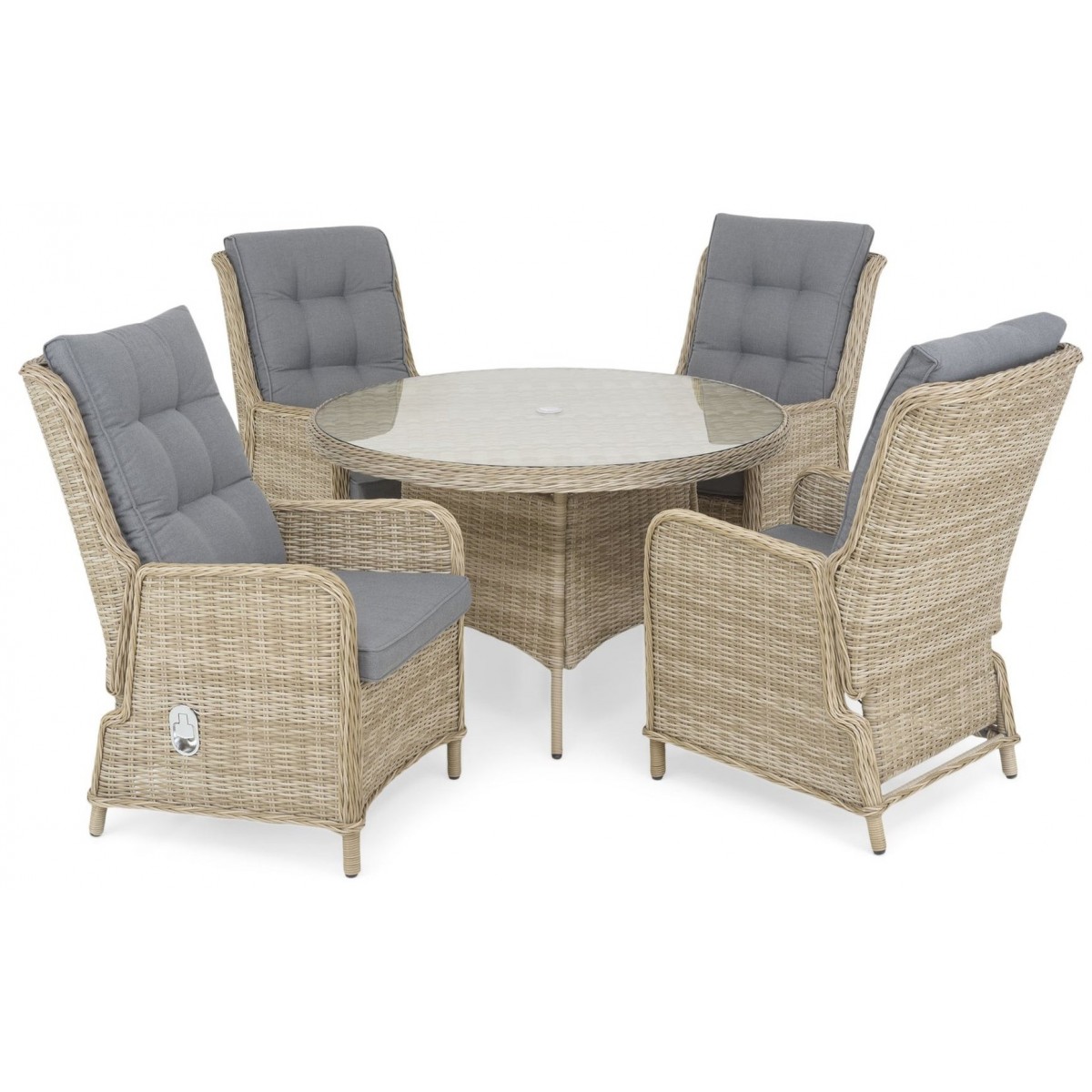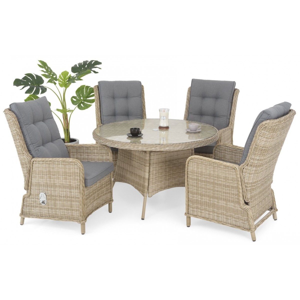 ✅ Set complet pentru 4 persoane: 1 masă rotundă + 4 fotolii cu recliner