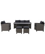 Creează-ți propriul colț de relaxare în aer liber cu acest set complet de mobilier pentru exterior cu 7 locuri, ideal pentru seri de vară în familie sau cu prietenii. Designul elegant, finisajul tip ratan și pernele groase adaugă un plus de confort și stil în orice grădină, terasă sau foișor.