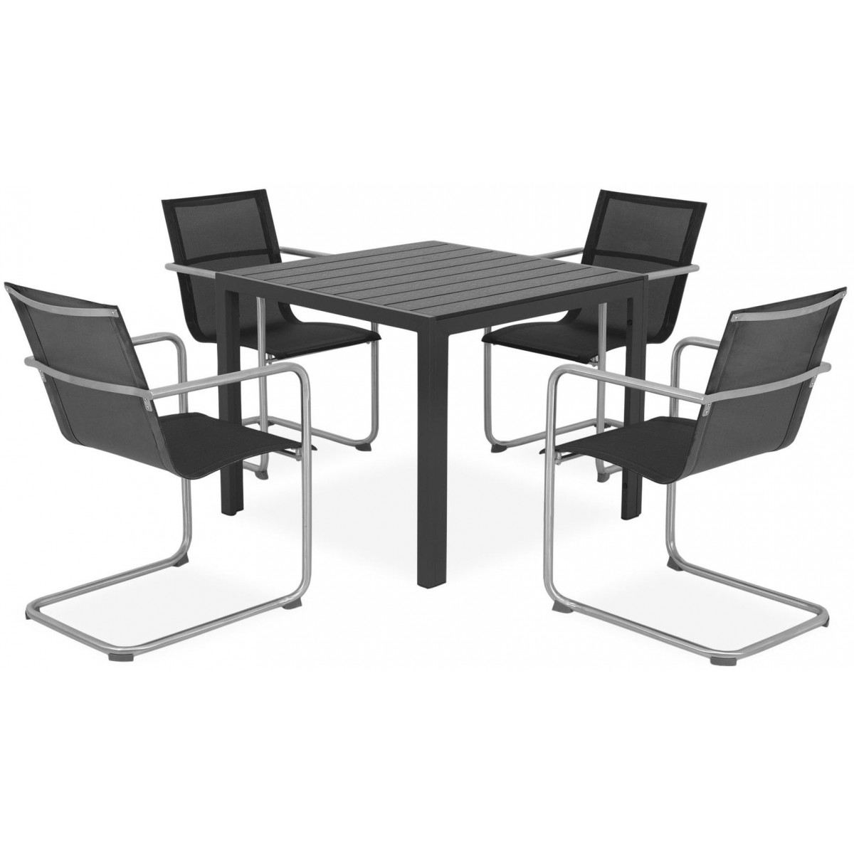 Set 4 scaune si masa ENCORE ESSEN negru cu gri