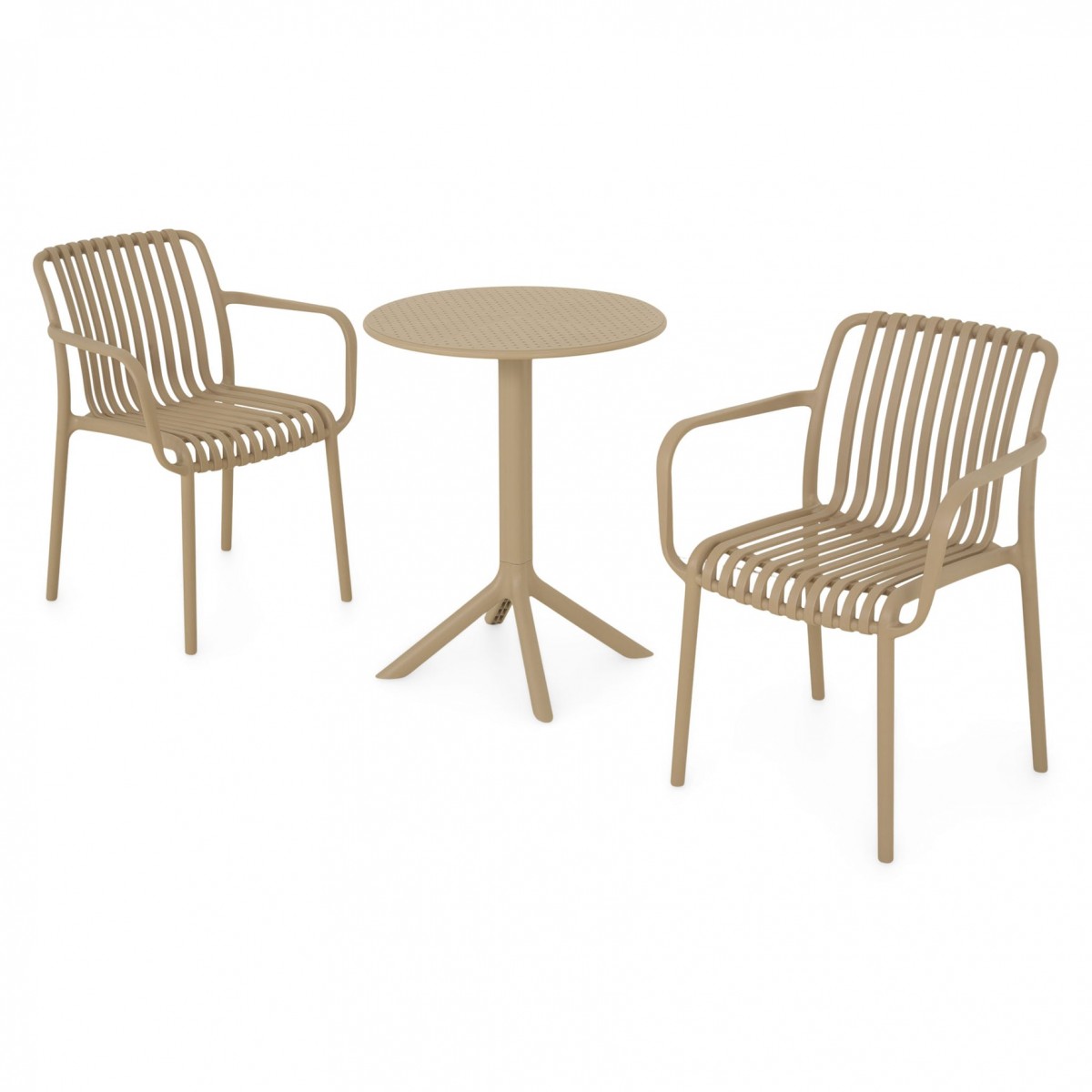 Setul CIRCLE ALPINE este o alegere practica si eleganta pentru amenajarea unui spatiu de relaxare in aer liber. Format dintr-o masa rotunda si doua scaune confortabile, setul este ideal pentru balcon, terasa sau gradina, oferind un loc placut pentru cafeaua de dimineata, o gustare rapida sau momente de relaxare in aer liber.
