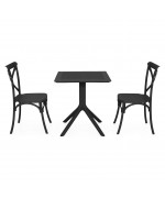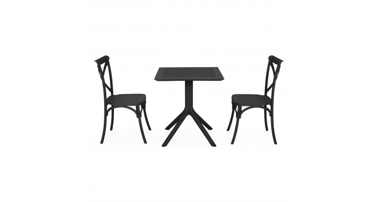 Realizat integral din polipropilena cu protectie UV, setul este conceput pentru utilizare frecventa in exterior, fara grija deteriorarii cauzate de soare sau umiditate. Scaunele sunt suprapozabile, ceea ce permite economisirea spatiului atunci cand nu sunt folosite.