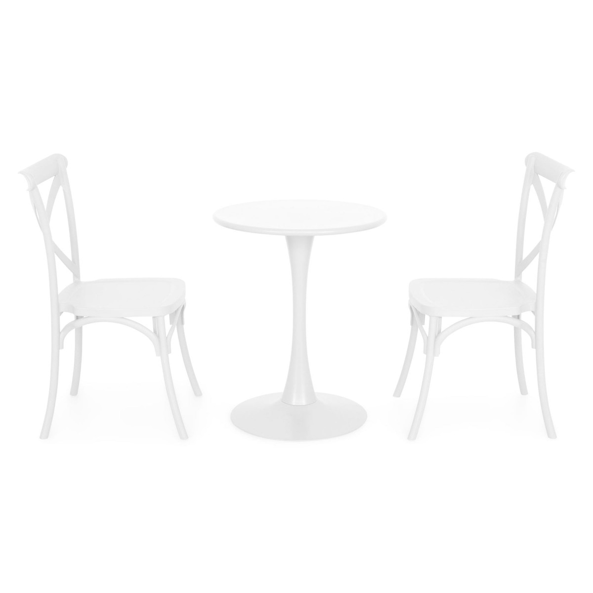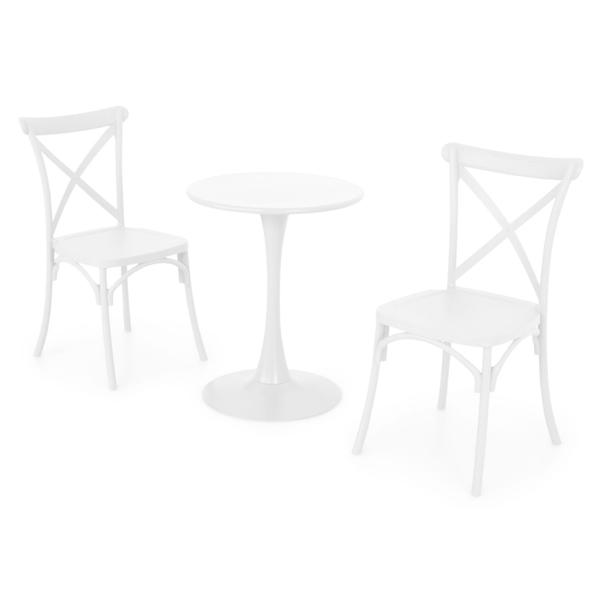 Setul de terasa PLEZURO SUCCOR in varianta alb este o alegere practica si moderna pentru spatii exterioare, fiind ideal pentru utilizare in horeca sau pentru uz rezidential. Masa compacta din otel vopsit electrostatic ofera stabilitate si rezistenta, iar scaunele din polipropilena sunt concepute pentru utilizare frecventa si confort optim.