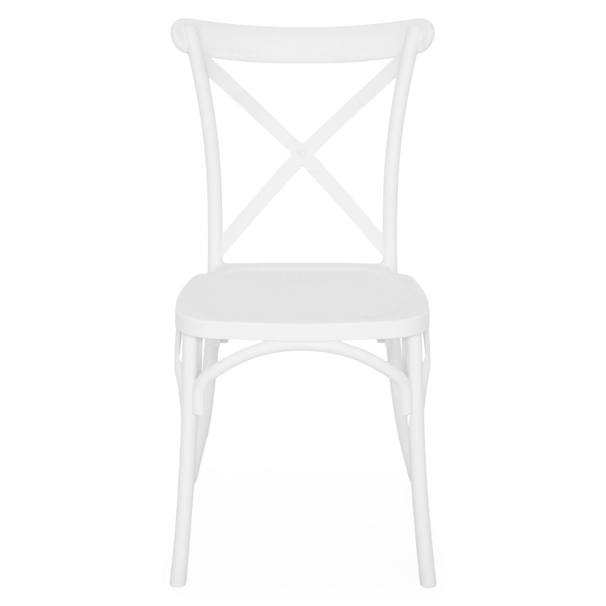 Scaun: scaun suprapozabil (2 buc.), L.54 x l.48.5 x H.91 cm, structura din polipropilena, finisaj vopsit, greutate maxima suportata 120 kg, protectie UV