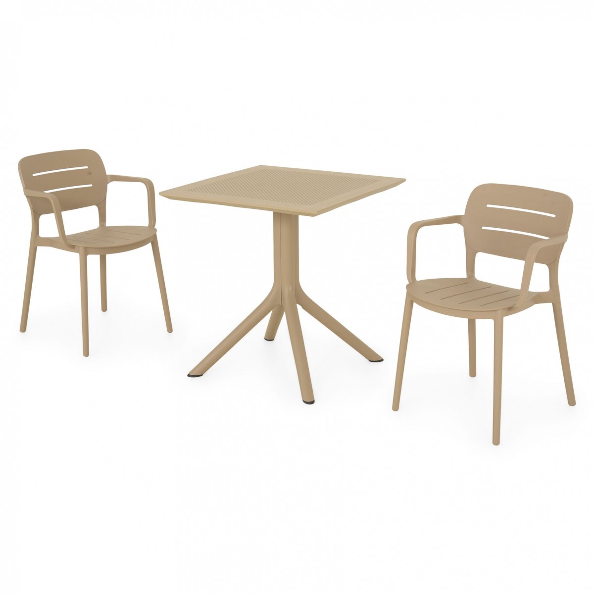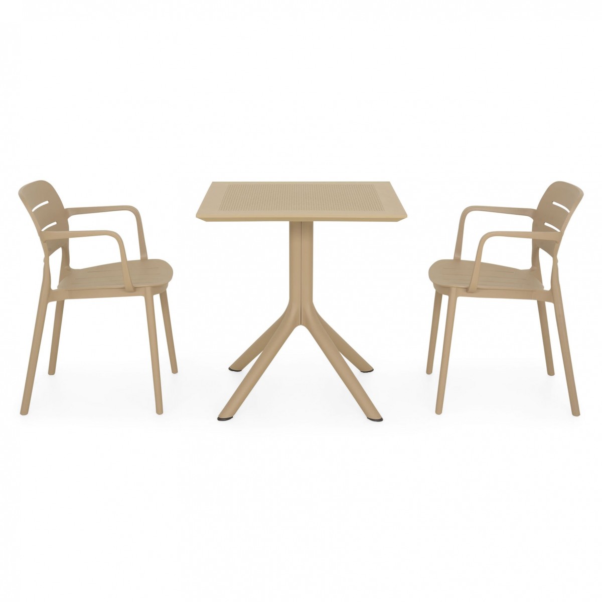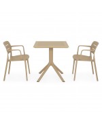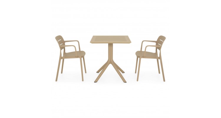 Masa: masa de cafea fixa, L.70 x l.70 x H.75 cm, grosime blat 1 cm, structura cu picioare, blat din polipropilena, protectie UV