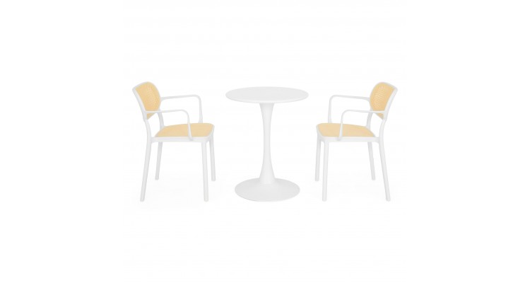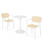 Setul de terasa PLEZURO ALIVIO este solutia ideala pentru spatii exterioare compacte, fiind perfect pentru cafenele, restaurante sau balcoane amenajate modern. Masa de cafea cu structura din otel vopsit electrostatic asigura stabilitate si rezistenta in utilizare zilnica, iar scaunele din polipropilena completeaza setul cu un plus de confort si durabilitate.