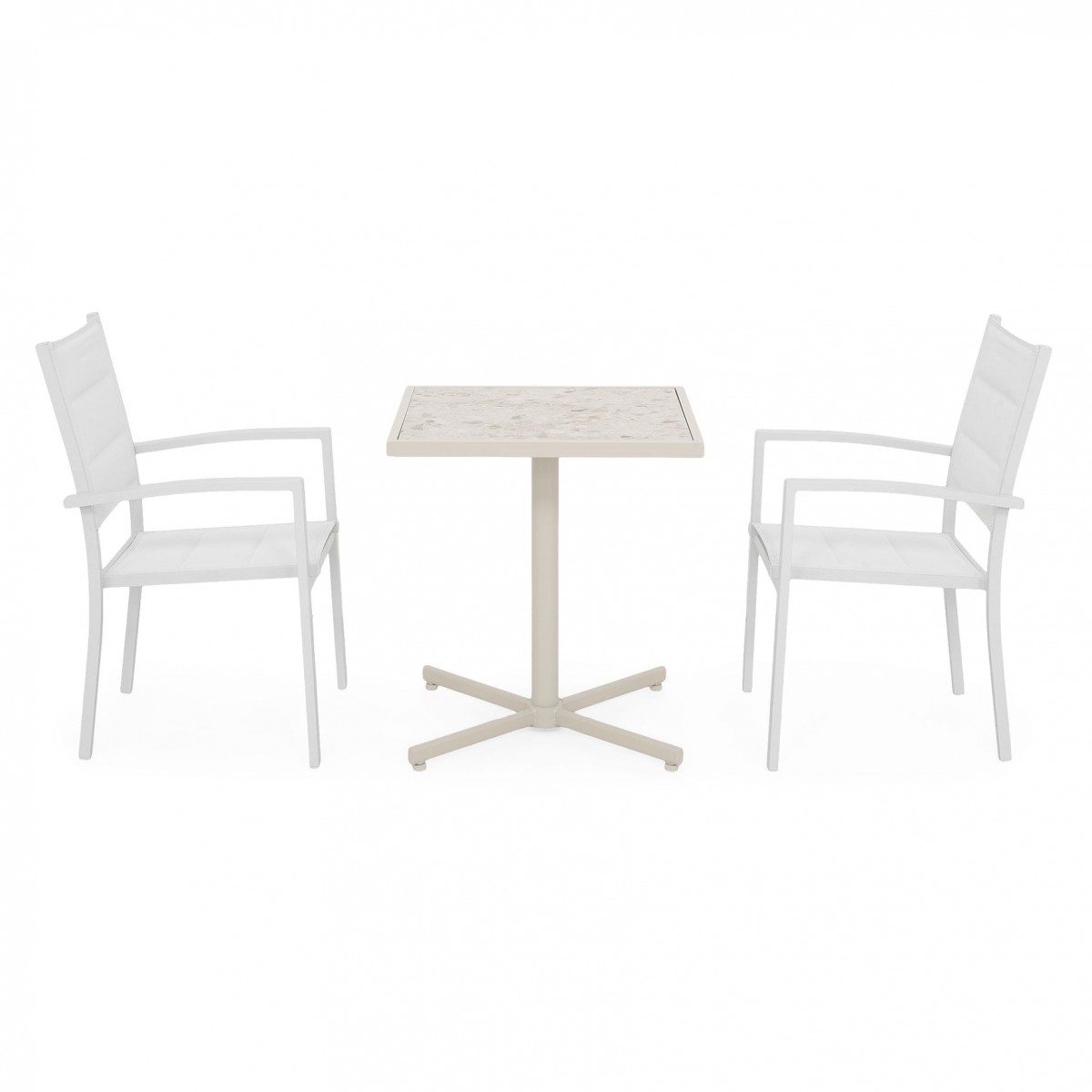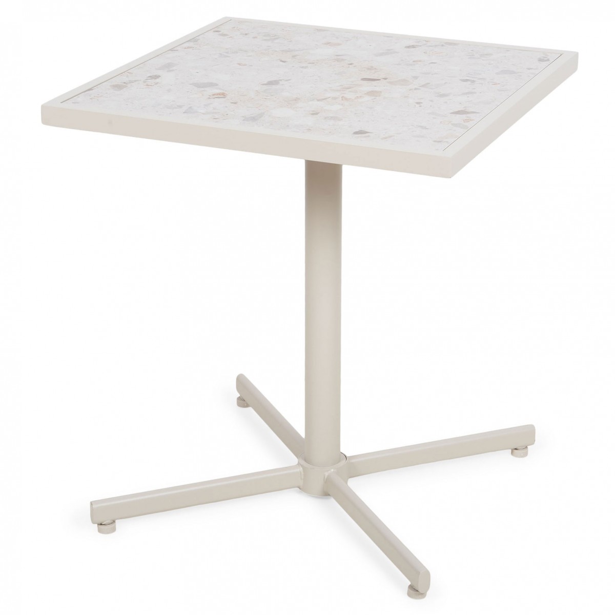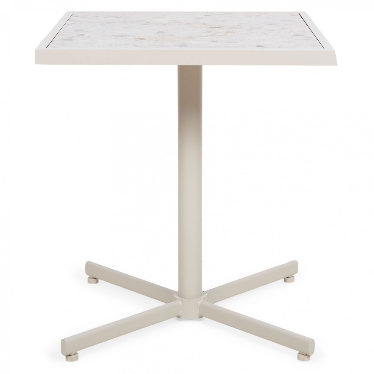 Masa este realizata pe structura din aluminiu si otel vopsite in camp electrostatic si este prevazuta cu blat din ceramica, un material rezistent la uzura si factori externi. Forma compacta o face perfecta pentru 2 persoane.