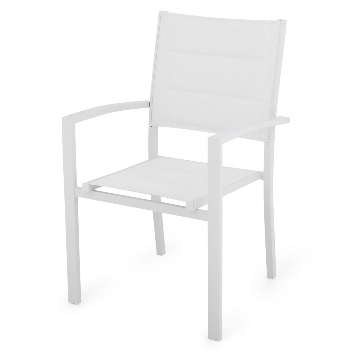 Scaunele au structura din aluminiu si sunt echipate cu sezut si spatar din textilina cu protectie UV, oferind confort si ventilatie optima. Fiind suprapozabile, acestea pot fi depozitate usor, un avantaj important in spatii dinamice sau horeca.