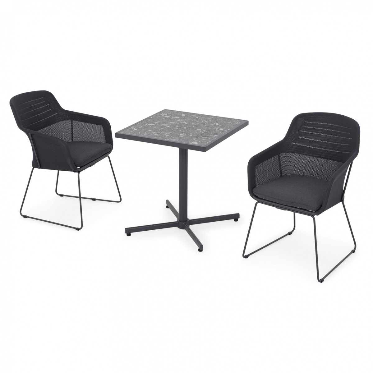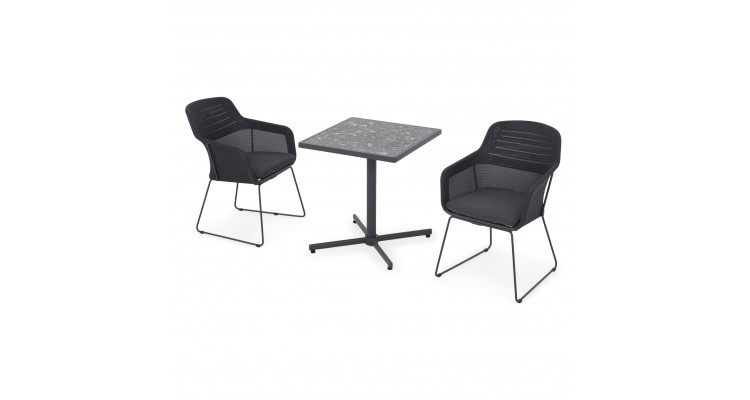 Setul MOCHA BEZIER este o alegere compacta si eleganta pentru amenajarea unui spatiu de dining in exterior, ideal pentru balcon, terasa sau zone de tip bistro. Designul modern in nuante de antracit si gri il face usor de integrat in orice decor contemporan.