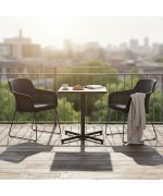 Masa este realizata pe structura din aluminiu si otel vopsite in camp electrostatic, avand blat din ceramica – un material rezistent la uzura, temperaturi si utilizare frecventa. Forma compacta o face ideala pentru spatii mai restranse.