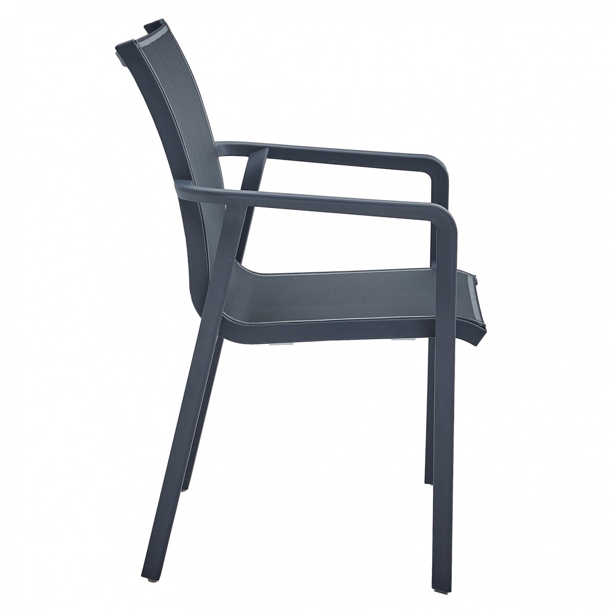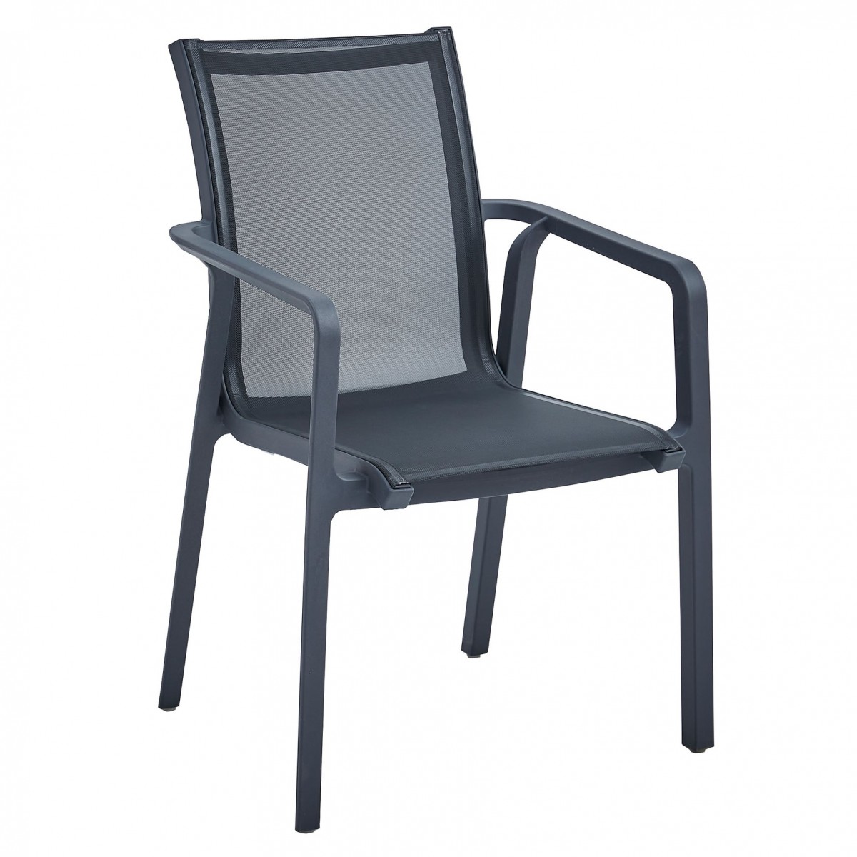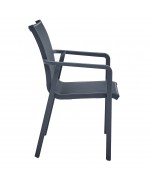 Masa este realizata cu blat din polipropilena rezistenta la UV si picioare din otel vopsit in camp electrostatic, oferind stabilitate si rezistenta in timp. Scaunele sunt construite pe structura din polipropilena si sunt echipate cu sezut si spatar din textilina fina, care asigura confort si ventilatie optima.