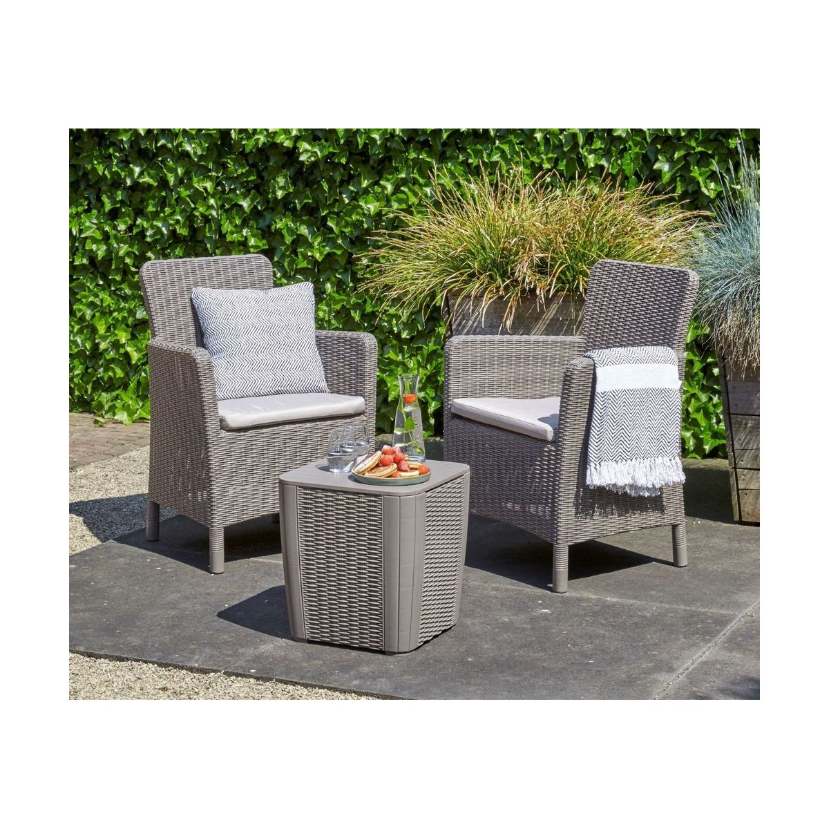 ✔ Continut pachet: 2 fotolii + 1 masa + 2 perne