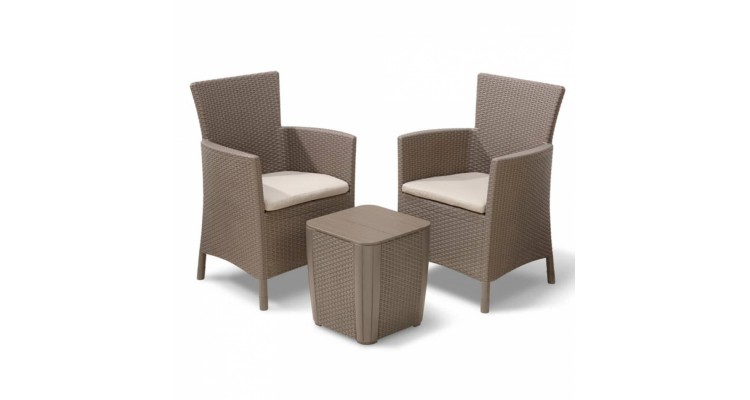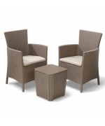 Set Mobilier de Balcon IOWA KETER Cappucino (Luzon Flat) Cod: 224383 Noul set pentru balcon Keter Iowa cu cotiere rotunjite este ideal pentru gradini, balcoane, terase. Chiar si intr-un spatiu limitat, cu setul de ratan Rosali, puteti crea locul perfect pentru a va relaxa la aerul curat. Setul este format din doua fotolii si o masa clasica. Sezuturile profilate confortabil si pernele moi din policoton sunt avantaje suplimentare ale produsului. Usor de curatat, rezistent la razele UV. DATORITA SISTEMULUI CLICK SI GO ESTE FOARTE USOR DE ASAMBLAT. Culoare: Cappuccino Dimensiune masa (L x l x h) (cm): 39 x 39 x 42 Dimensiune scaun (L x l x h) (cm): 62 x 60 x 89 Greutate totala (kg): 10,8 Material: Plastic Pachetul de livrare include: 1x masa , 2 x fotolii , 2 x perna de sezut Material husa perna: Policoton Culoare de baza: Cappucino Dimensiune ambalaj (L x l x h) (cm): 80 x 60 x 50 cm