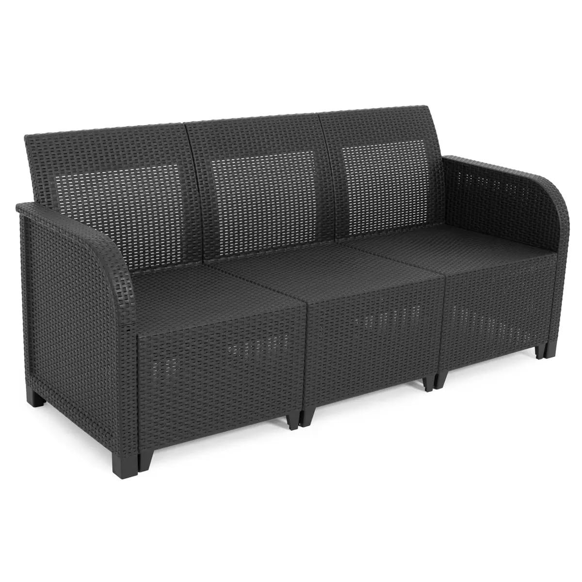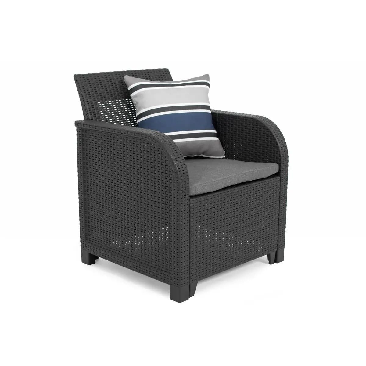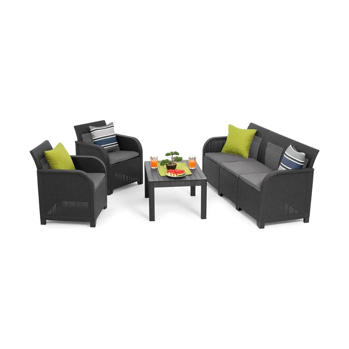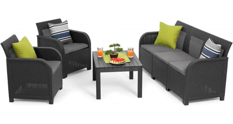 Setul Keter Rosalie este o solutie versatila pentru amenajarea gradinii sau terasei, oferind confort pentru 5 persoane si posibilitatea de configurare in doua variante. Designul modern, cu linii rotunjite si finisaj tip ratan, se integreaza usor in orice spatiu exterior.