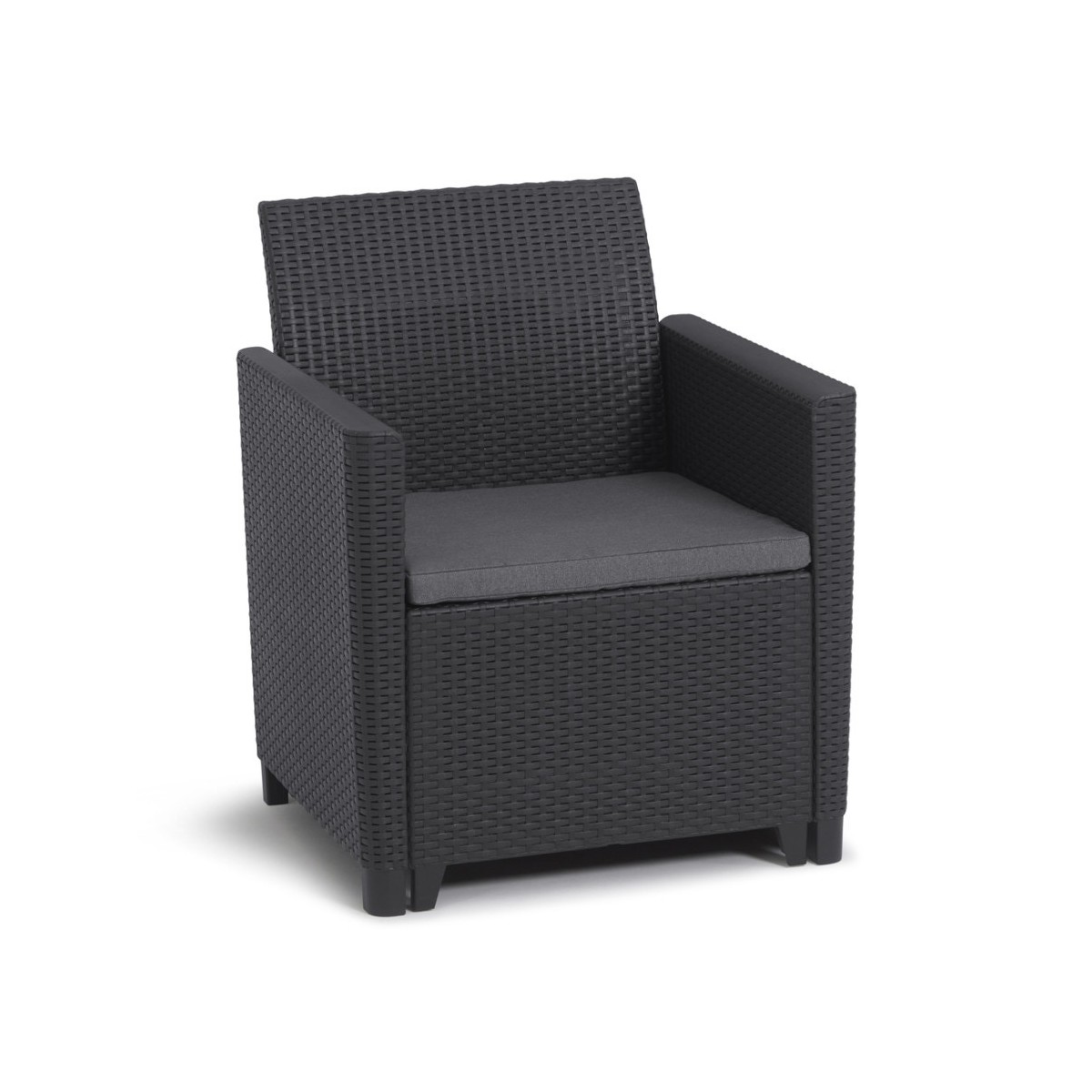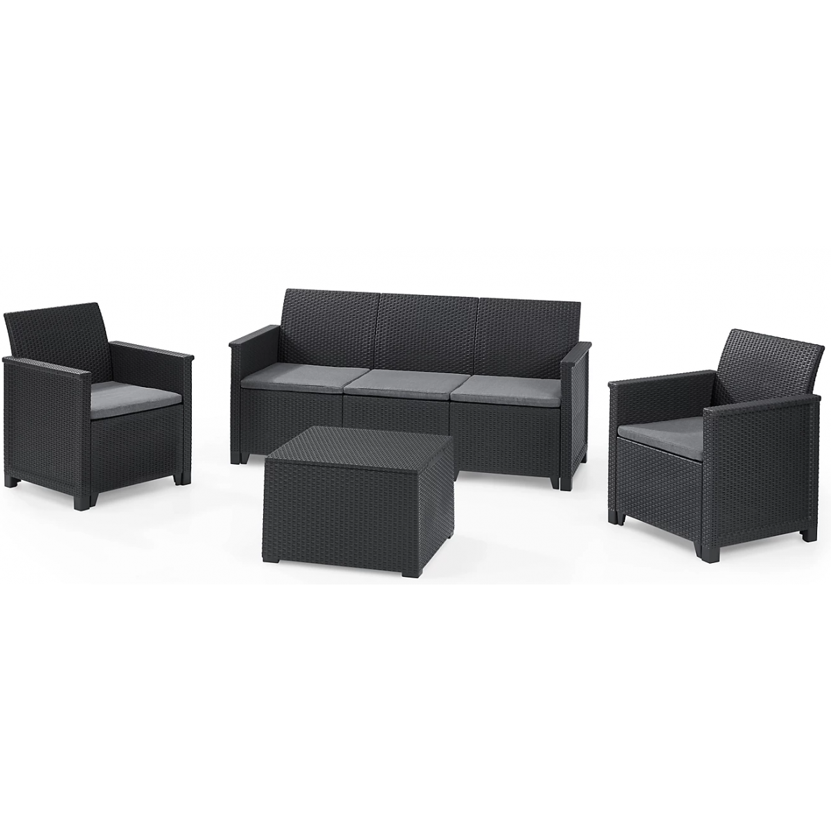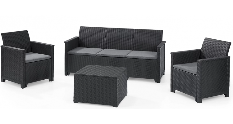 Setul de mobilier Keter Claire este o alegere moderna si functionala pentru amenajarea spatiilor exterioare. Cu un design elegant tip ratan si perne confortabile, acest set ofera un echilibru perfect intre estetica si utilitate. Masa inclusa dispune de spatiu de depozitare, ideala pentru pastrarea pernelor sau a accesoriilor atunci cand nu sunt utilizate.