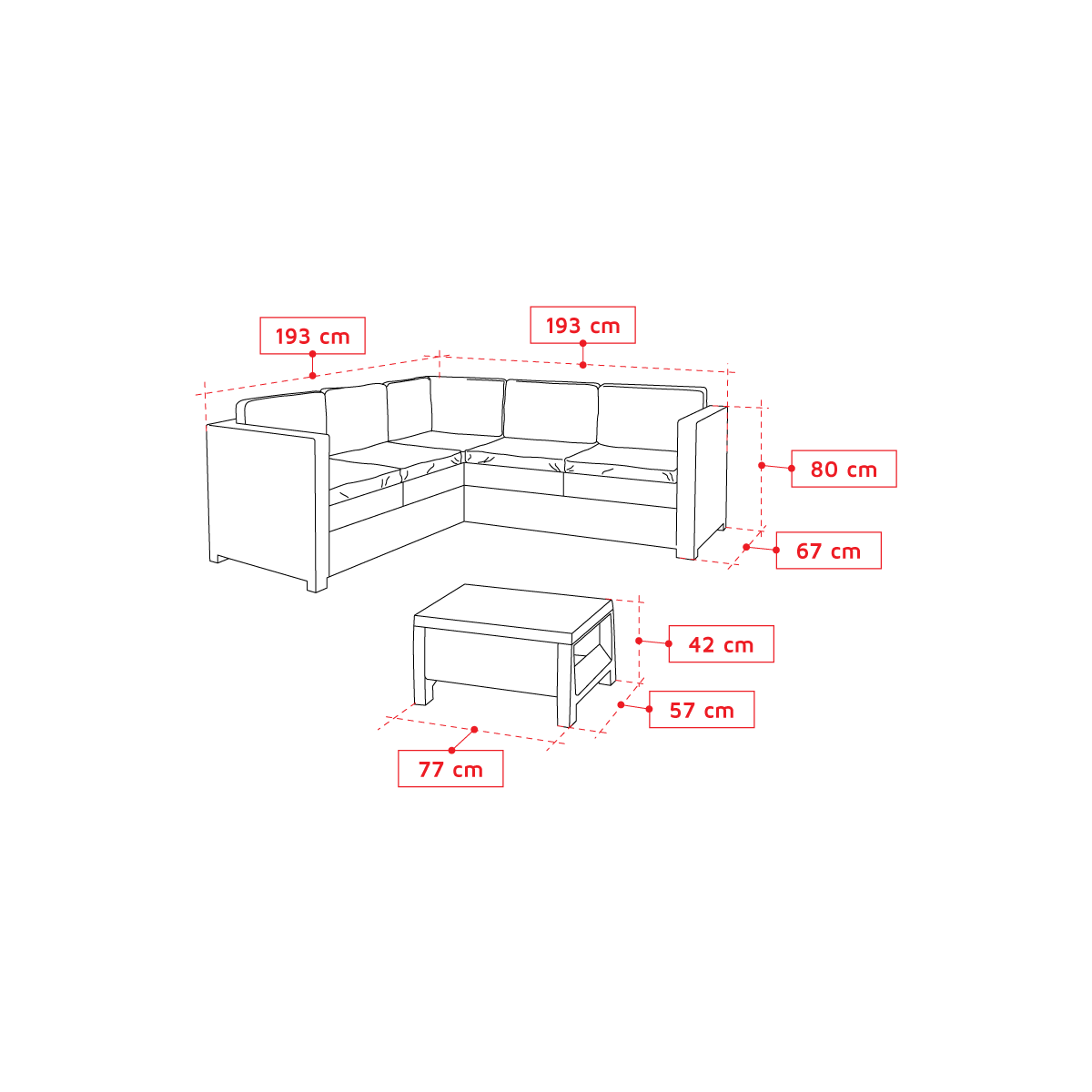 ✔ Dimensiune coltar: 194 x 194 x 77 cm