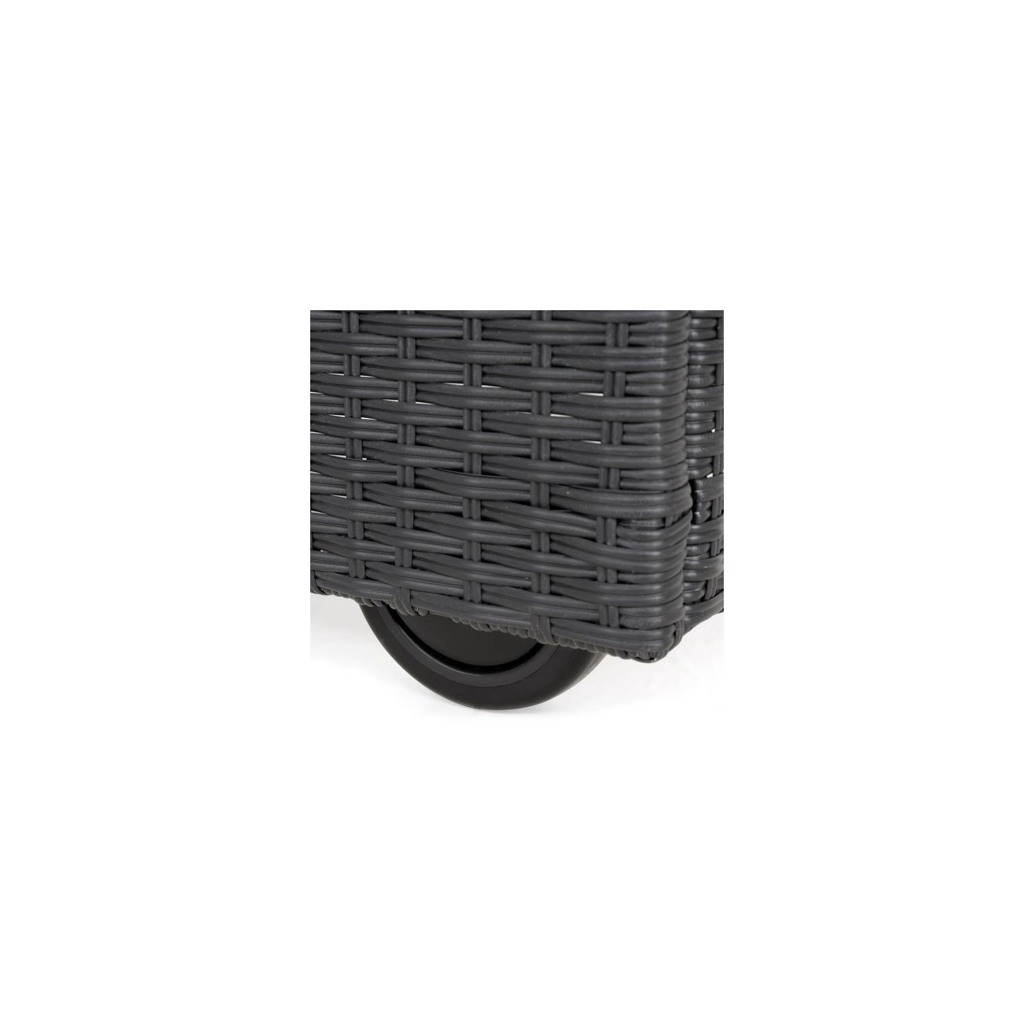 Realizat din structura de otel vopsita in camp electrostatic si impletita cu fibre sintetice(polipropilena) tratate impotriva decolorarii, ce imita ratanul.