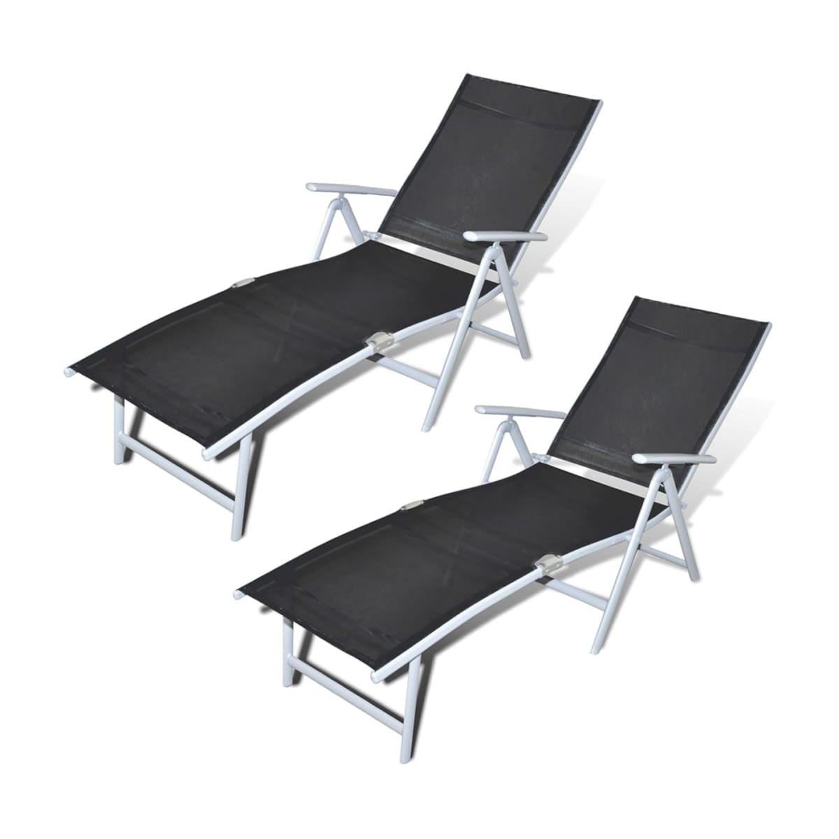 Sezlong de exterior 2 buc, aluminiu, gri si negru