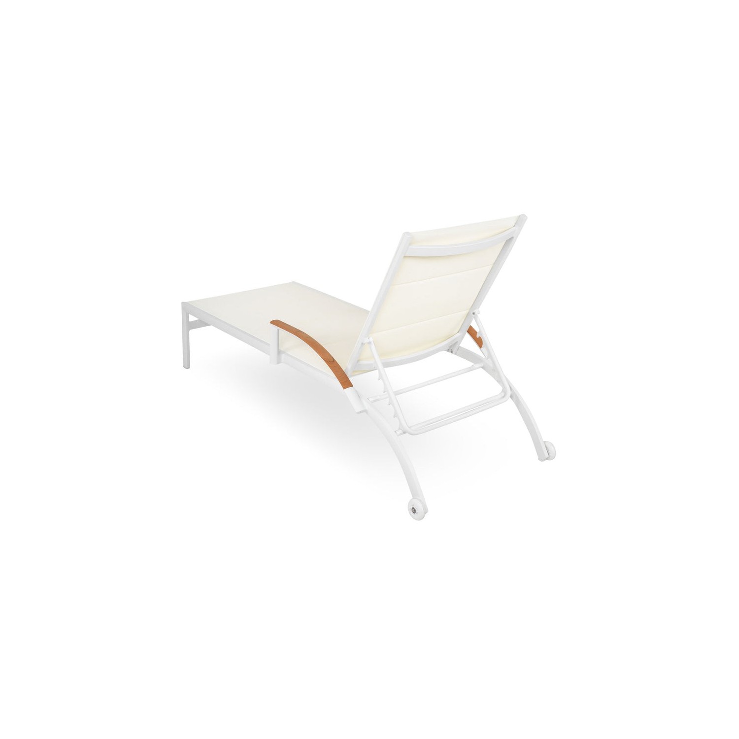 Realizat din structura de aluminiu vopsita in camp electrostatic, iar sezutul si spatarul din textilina fina cu protectie UV, sezlongul va ofera confortul perfect de fiecare data cand veti lua loc pe el.