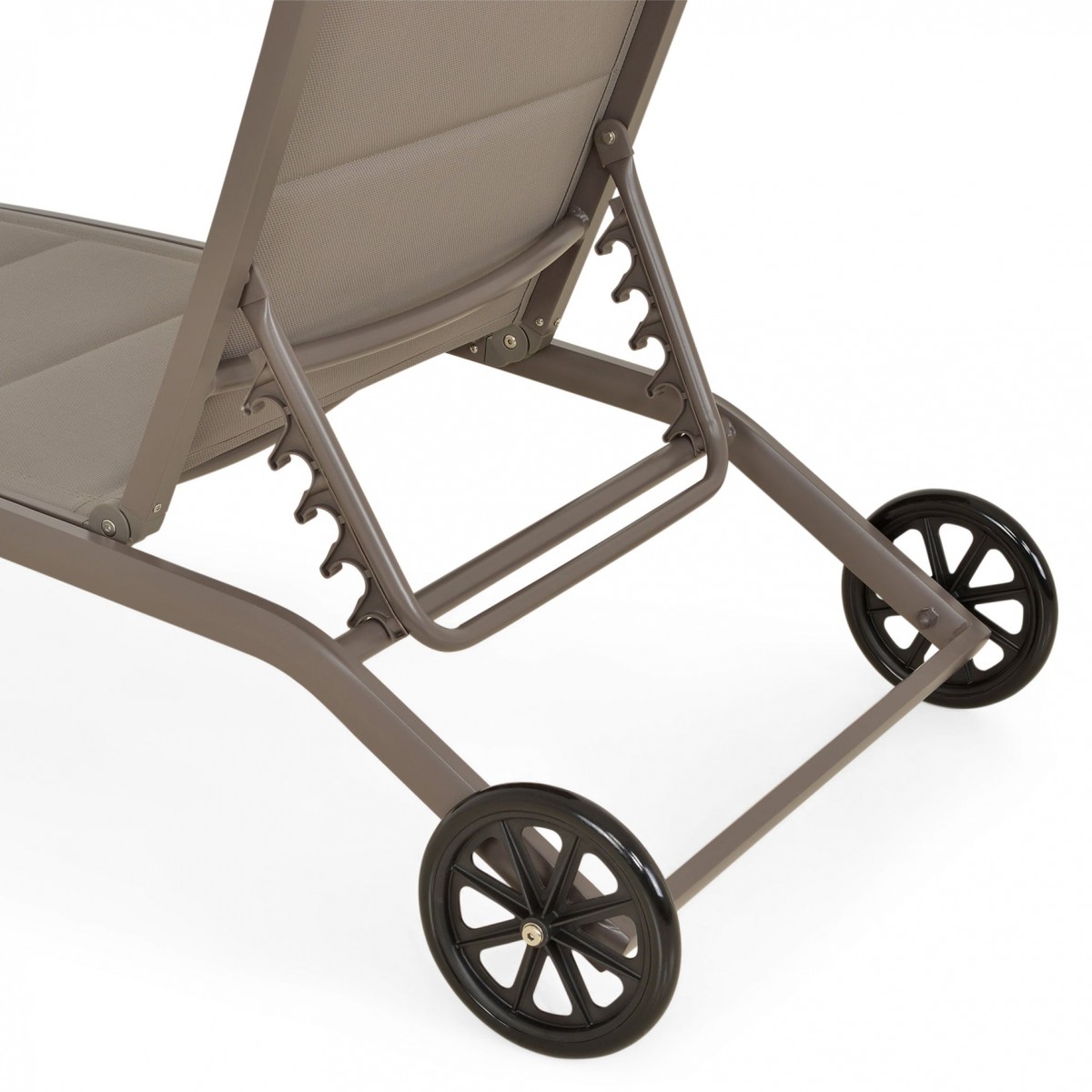 Spatarul reglabil permite ajustarea pozitiei in functie de preferinte, fie pentru citit, relaxare sau bronz. Rotile integrate faciliteaza mutarea sezlongului cu usurinta, astfel incat acesta poate fi repositionat rapid in functie de soare sau de configuratia terasei.