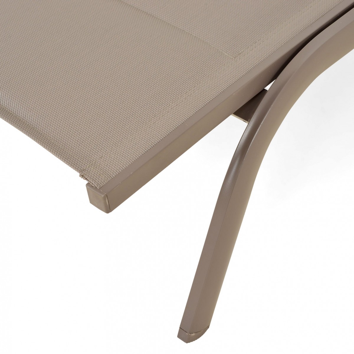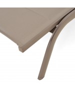 Constructia este realizata din aluminiu vopsit in camp electrostatic, un material rezistent la intemperii si potrivit pentru utilizare indelungata in exterior. Sezutul si spatarul sunt realizate din textilina dubla cu protectie UV, iar in interior este integrat un strat de vata siliconata care ofera un plus de confort si sustinere in timpul utilizarii.