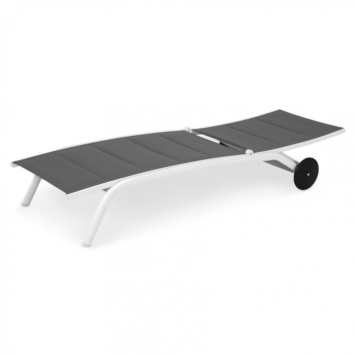 Structura este realizata din aluminiu vopsit in camp electrostatic, ceea ce ofera rezistenta la intemperii si stabilitate in timp. Sezutul si spatarul sunt confectionate din textilina dubla cu protectie UV, avand in interior un strat de vata siliconata care adauga un plus de confort in timpul utilizarii.