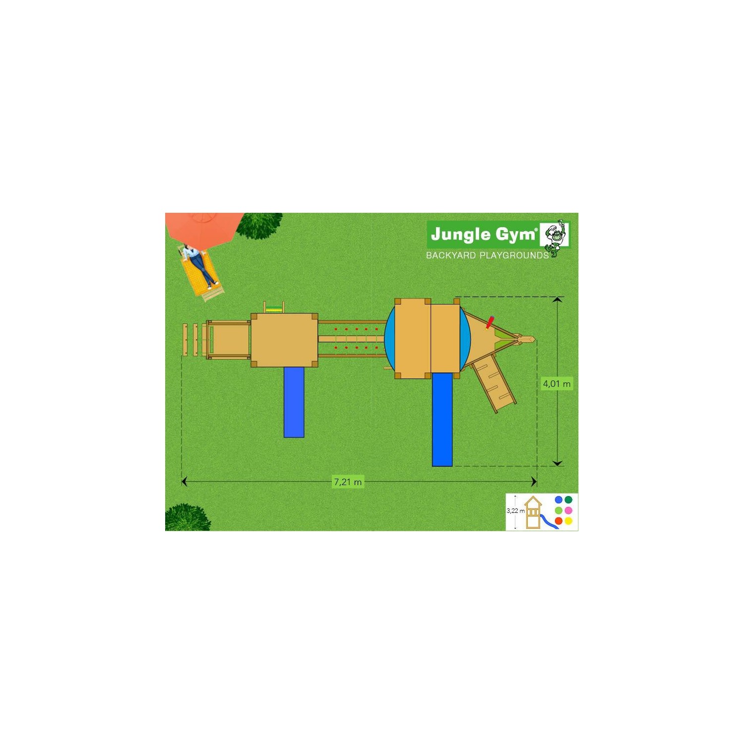 Acest complex de joaca contine urmatoarele turnuri/module/accesorii: