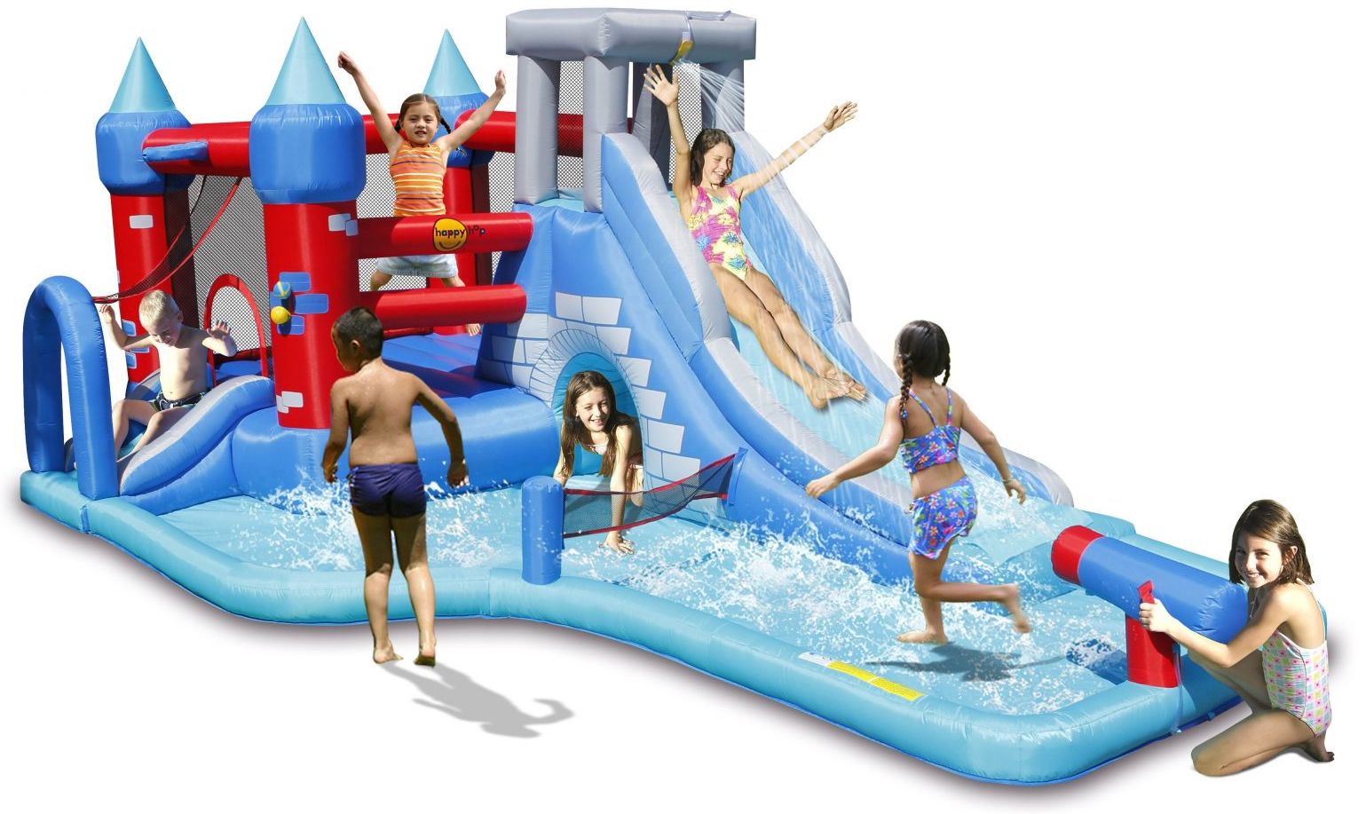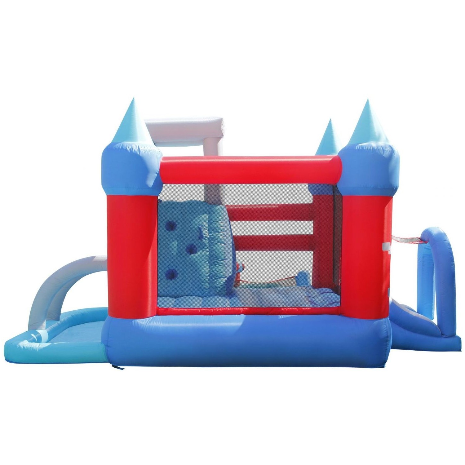 Toboganul gonflabil asigura o multime de activitati distractive: catarare, alunecare, tunel, loc de joaca cu bile, loc de aruncat la tinta, cos de baschet, tun cu apa, si racorire in piscina de la baza.Spatiu de joaca gonflabil pentru sarit.