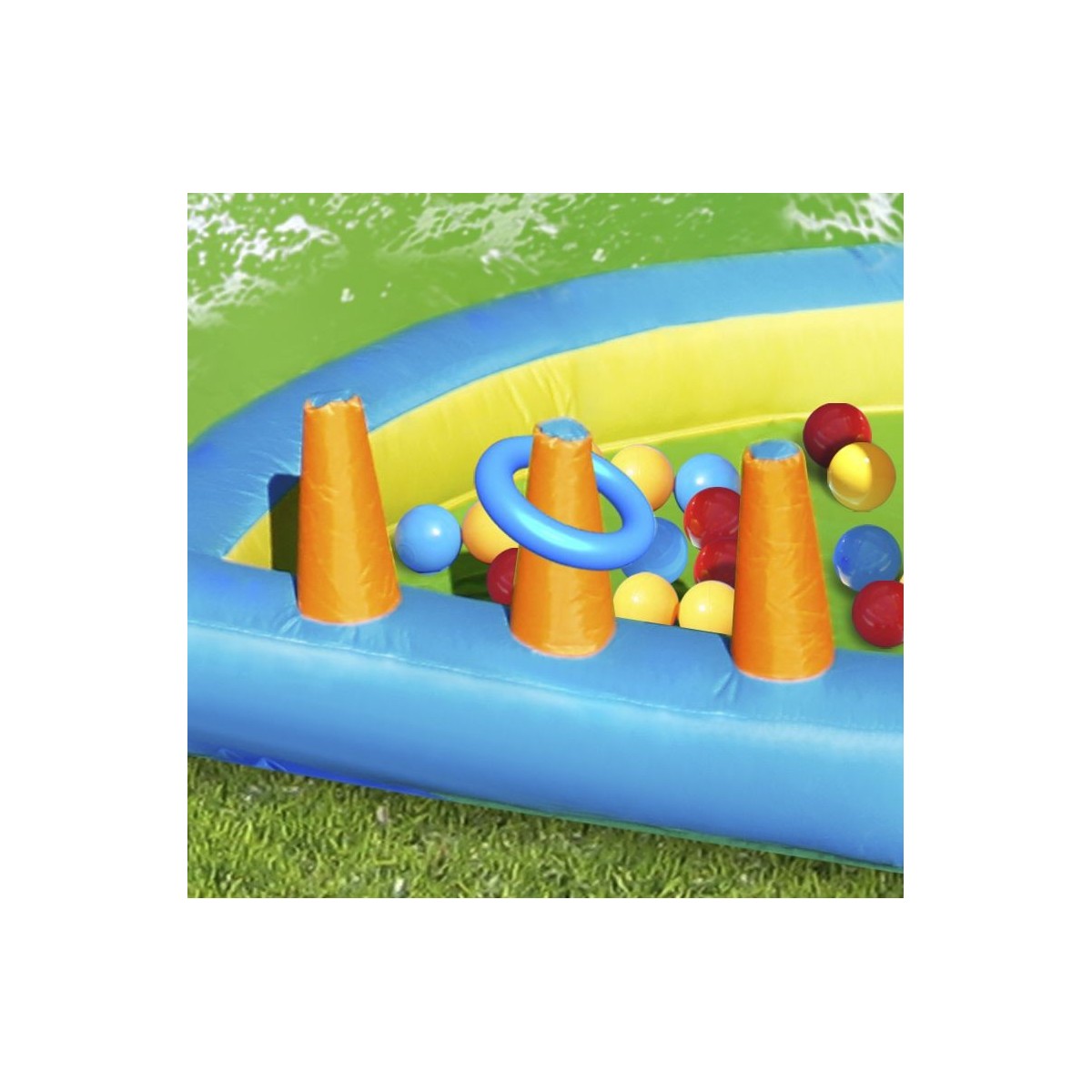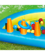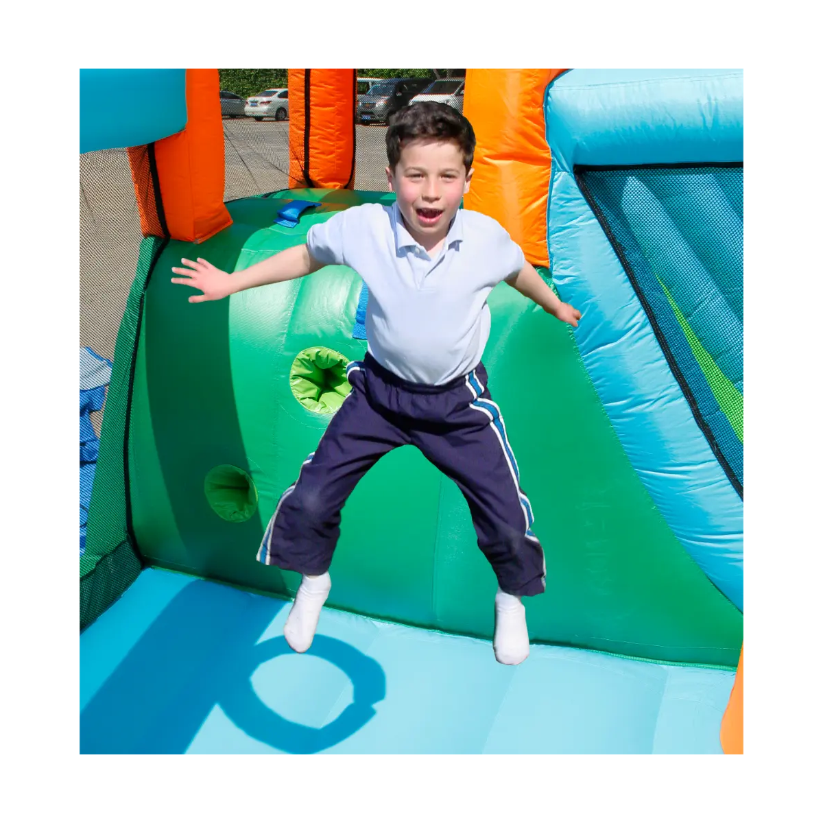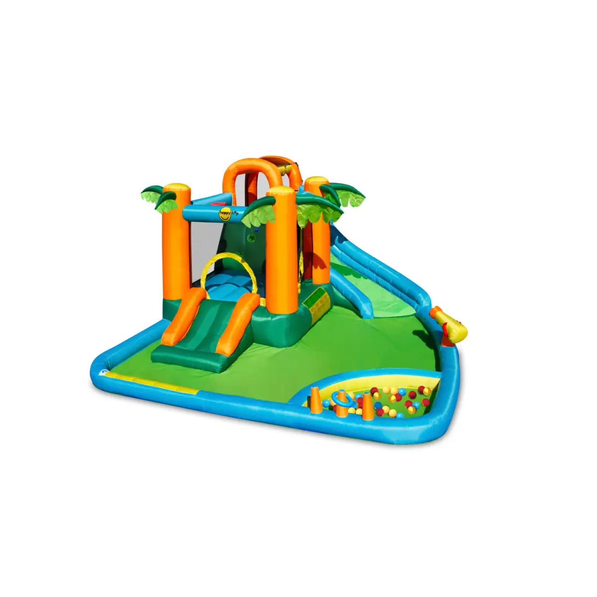 Transformă orice curte într-un paradis al distracției cu Salteaua Gonflabilă Oasis 7 în 1. Concepută pentru ore de joacă interactivă și creativă, această structură multifuncțională aduce împreună activități diverse care stimulează imaginația, energia și abilitățile motorii ale celor mici.