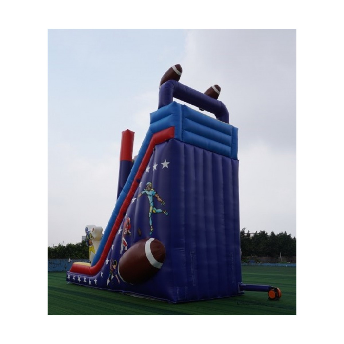 Centrul de joaca gonflabil cu tematica fotbal este o atractie spectaculoasa pentru copii, ideal pentru evenimente, locuri de joaca sau inchiriere. Cu dimensiuni generoase si design colorat, ofera o experienta completa de distractie, combinand zona de sarituri cu toboganul. Realizat din PVC profesional, acest gonflabil este conceput pentru utilizare intensiva si siguranta maxima.