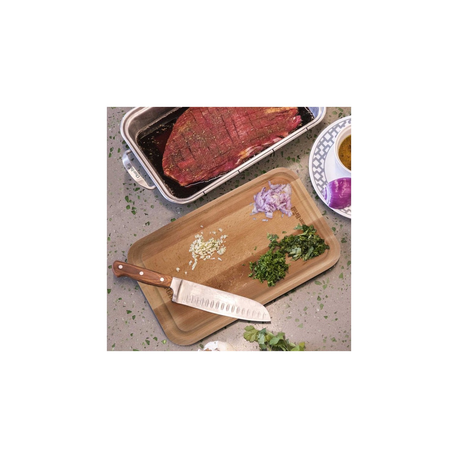 Tava din inox cu tocator de lemn Char-Broil 140014