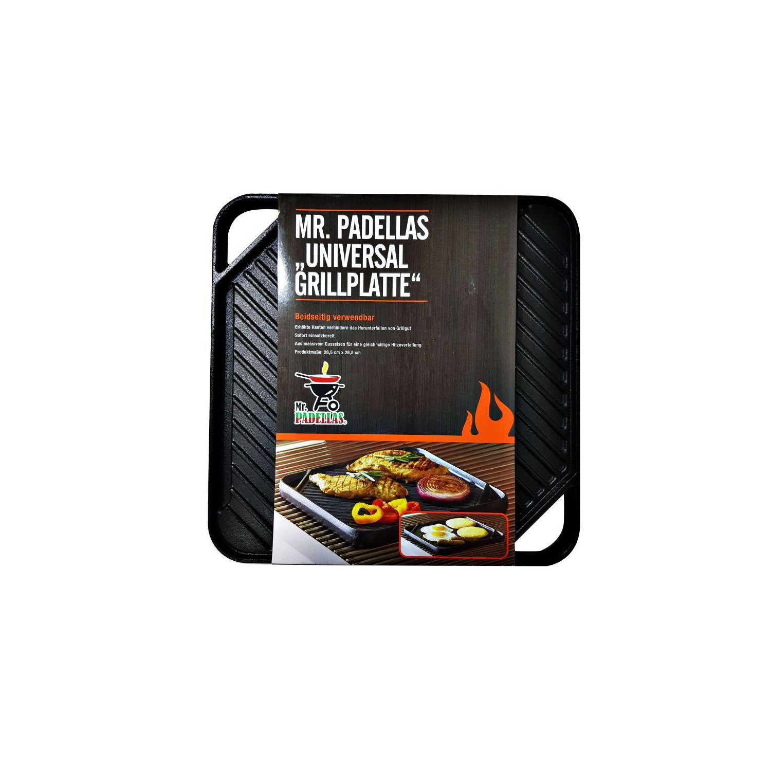 Plita universala din fonta cu 2 fete neteda si grill 26,5 x 26,5 cm Mr. Padelllas Activa 20020.
