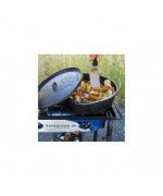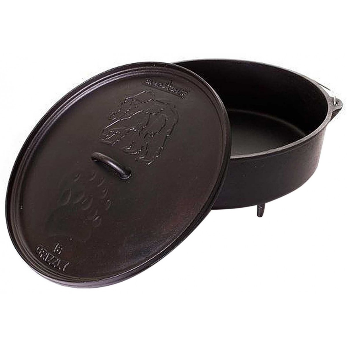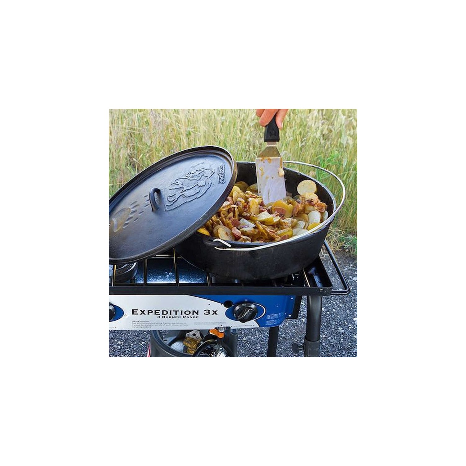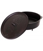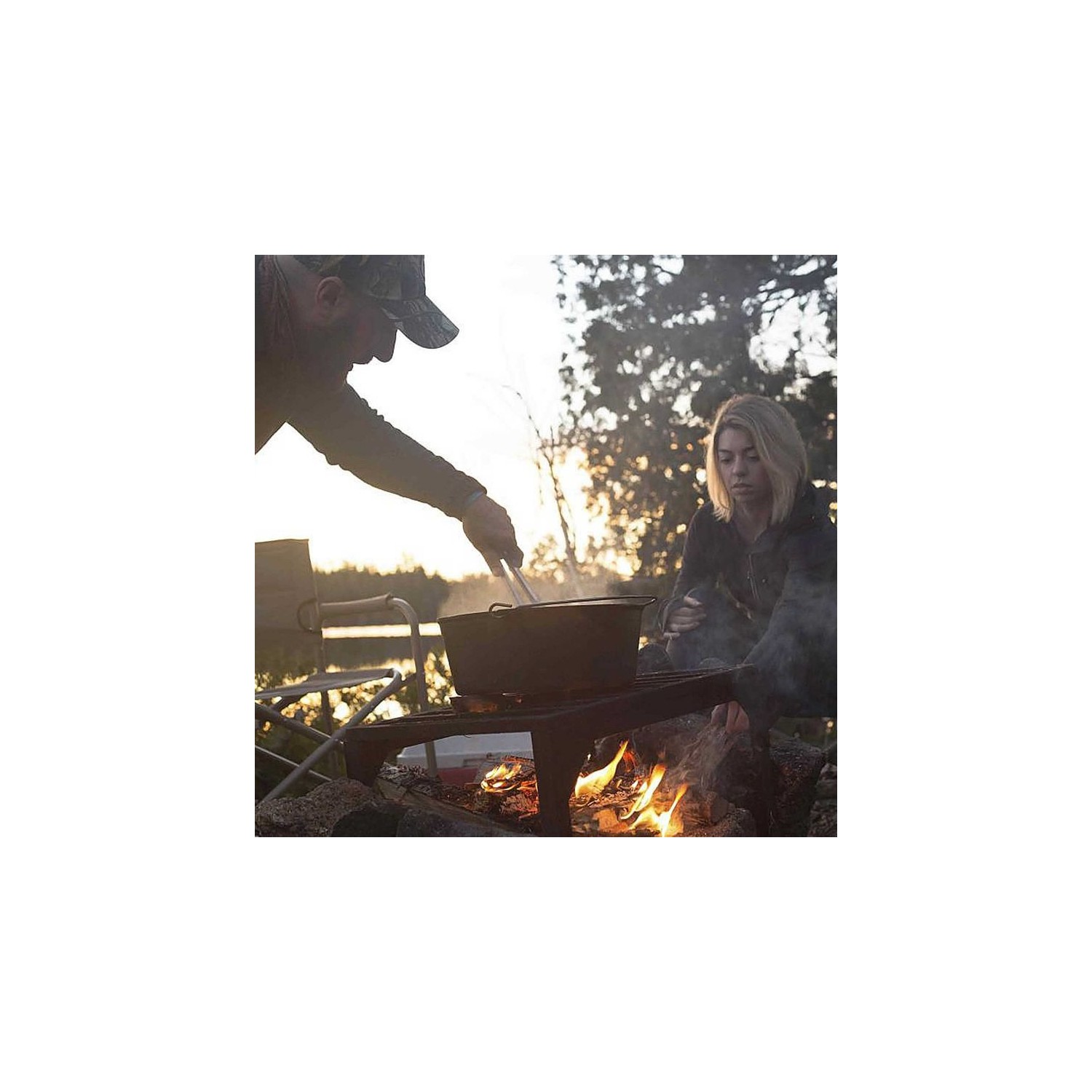 Aceasta piesa din fonta are o flansa pe capac, ceea ce o face excelenta pentru gatit cu brichete de carbuni sau cu aschii de lemn asezate direct pe capac. Mai mult, fiecare vas de fonta de la Camp Chef este asezonat in prealabil, ceea ce ii confera o suprafata natural neaderenta, usor de curatat dupa gatire. Asemenea oricarui vas din fonta, acest ceaun prezinta si avantajul de a fi deosebit de rezistent in timp. Este prevazut cu trei picioruse, ceea ce ii confera stabilitate in utilizare. Poate fi folosit pe plita cu gaz, in cuptor, la foc deschis de lemne sau carbuni.