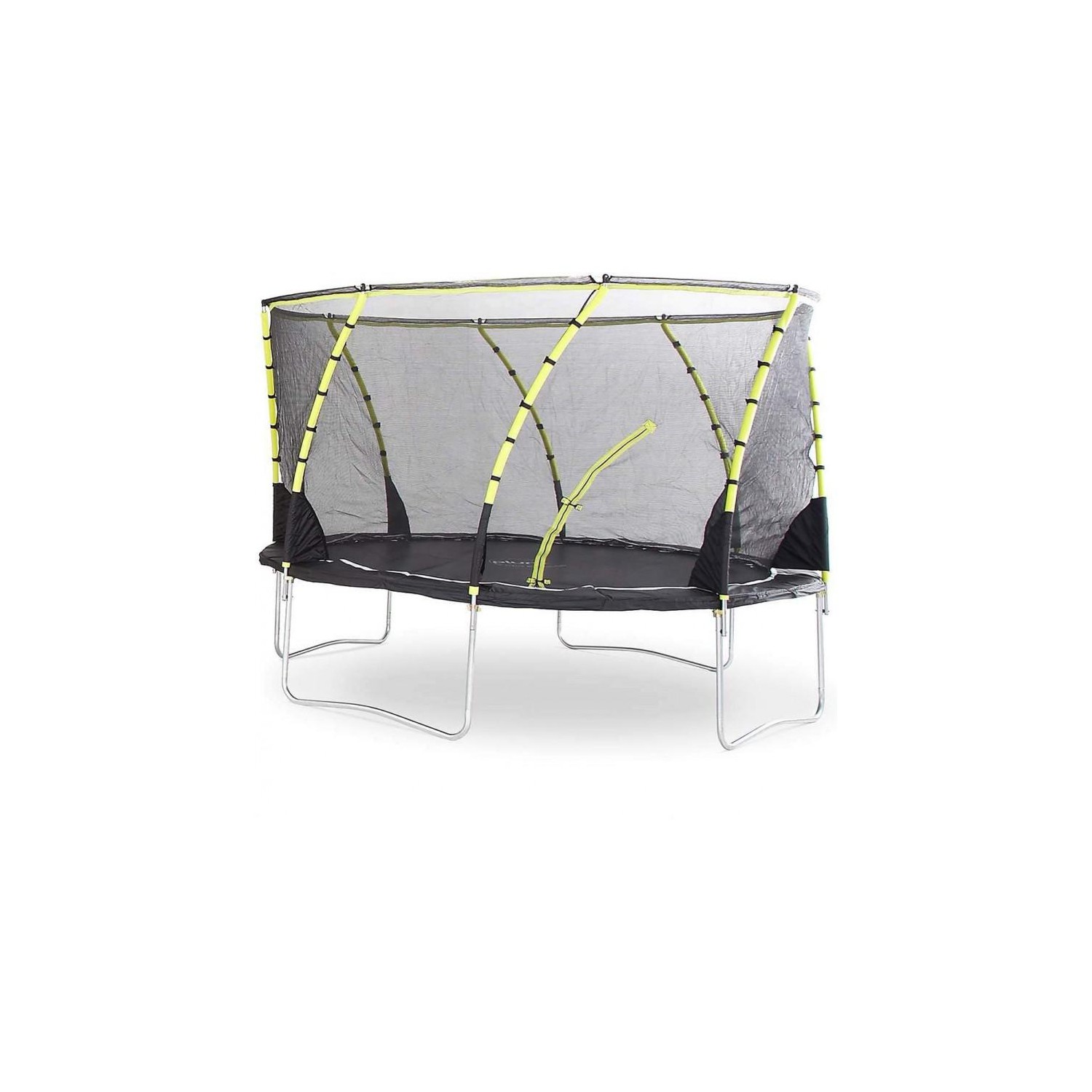 Designul inovativ 3G® are curbata plasa de protectie si picioarele acesteia pentru a proteja copii atunci cand sar, maximizand totodata spatiul utilizat. Cadrul trambulinei este din otel zincat in interior si exterior, pentru protectie fara rugina si rezistenta crescuta in timp.