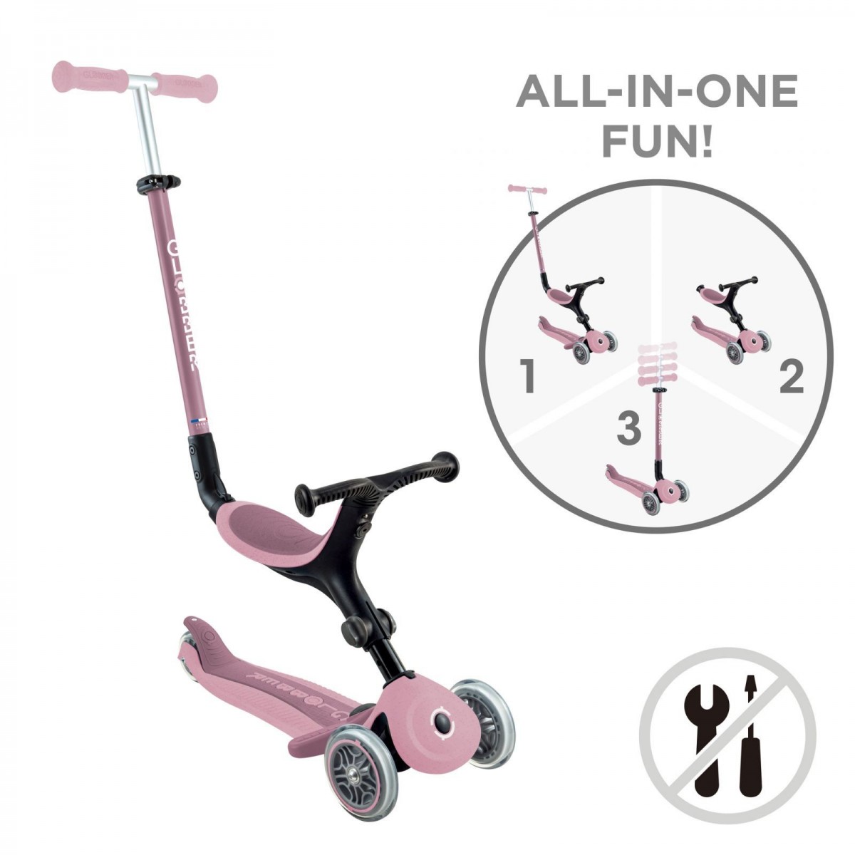 O trotienta care va creste o data cu copilul tau!! Sistemul patentat de GLOBBER va transforma trotineta intr-un "ride-on" prin simpla apasare a unui buton!! nu este necesar nici un tip de cheie.