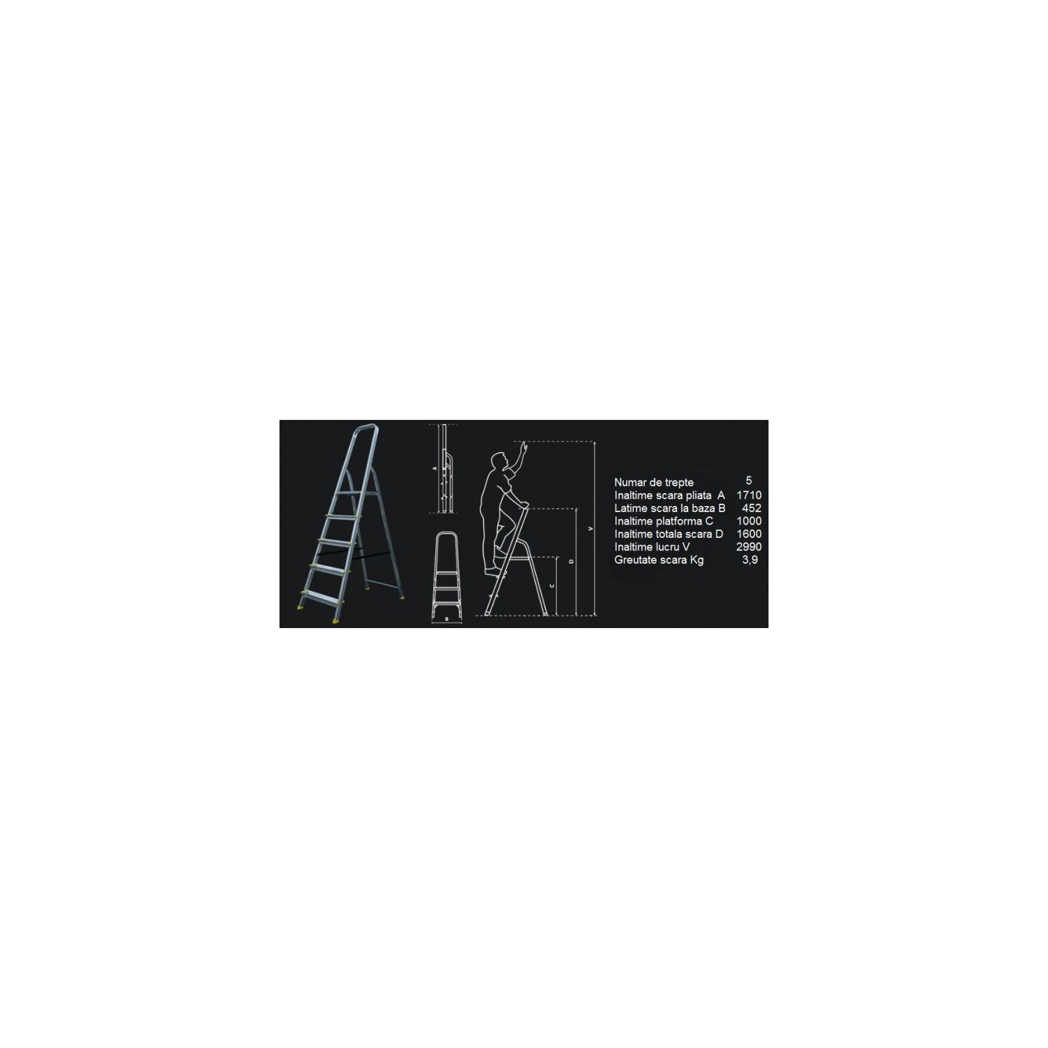 Scara din aluminiu cu 5 trepte, rezistenta mare 120 kg/fiecare treapta.