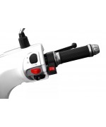 In partea stanga a ghidonului gasim functiile de control al luminilor, semnalizatoarelor și claxonului, iar in partea dreapta funcții care nu mai sunt atât de comune la scutere, de exemplu, un comutator pentru limitarea vitezei.