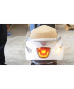 La o privire mai atenta, observam ca scuterul este echipat cu absolut tot ceea ce este necesar pentru traficul din oras.